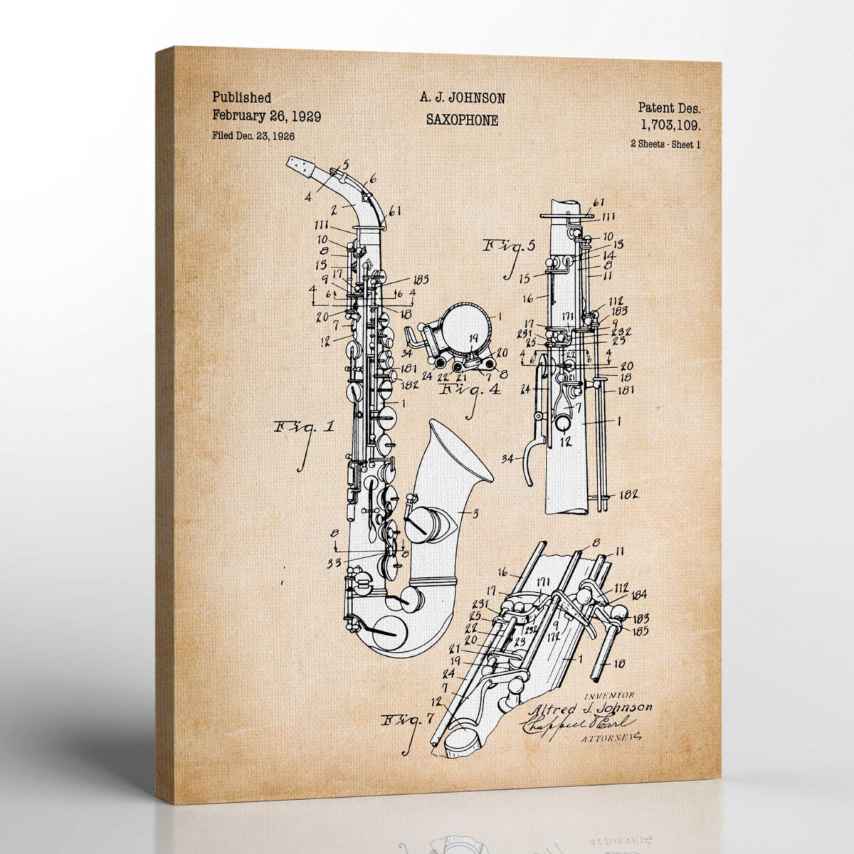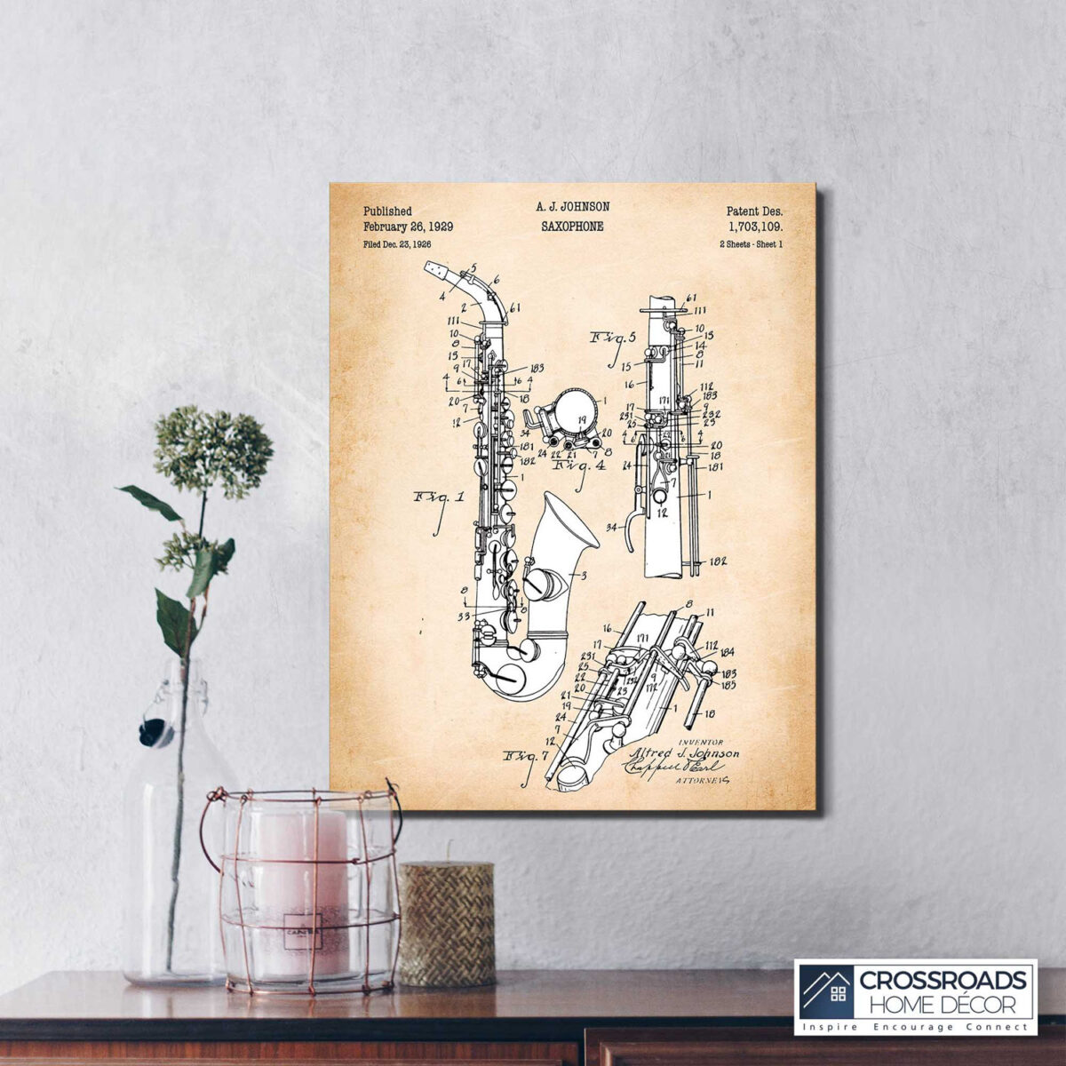 Crossroads Home Décor, Saxophone Player Gifts, Saxophone Patent Canvas Print , Ready To Hang for Living Room Home Wall Decor