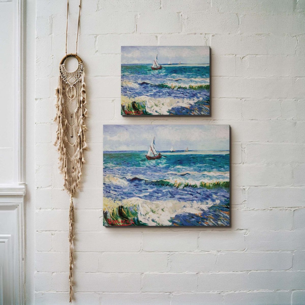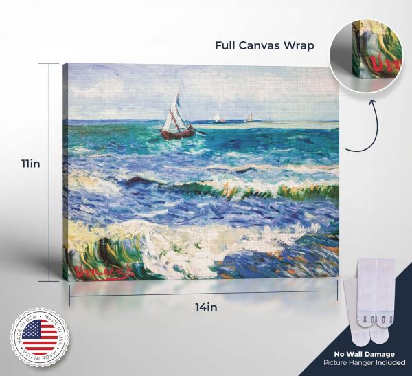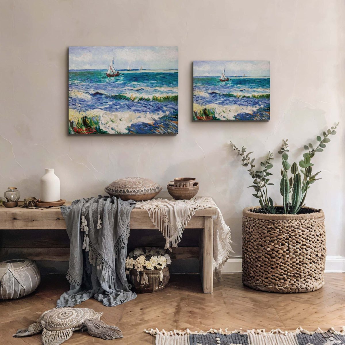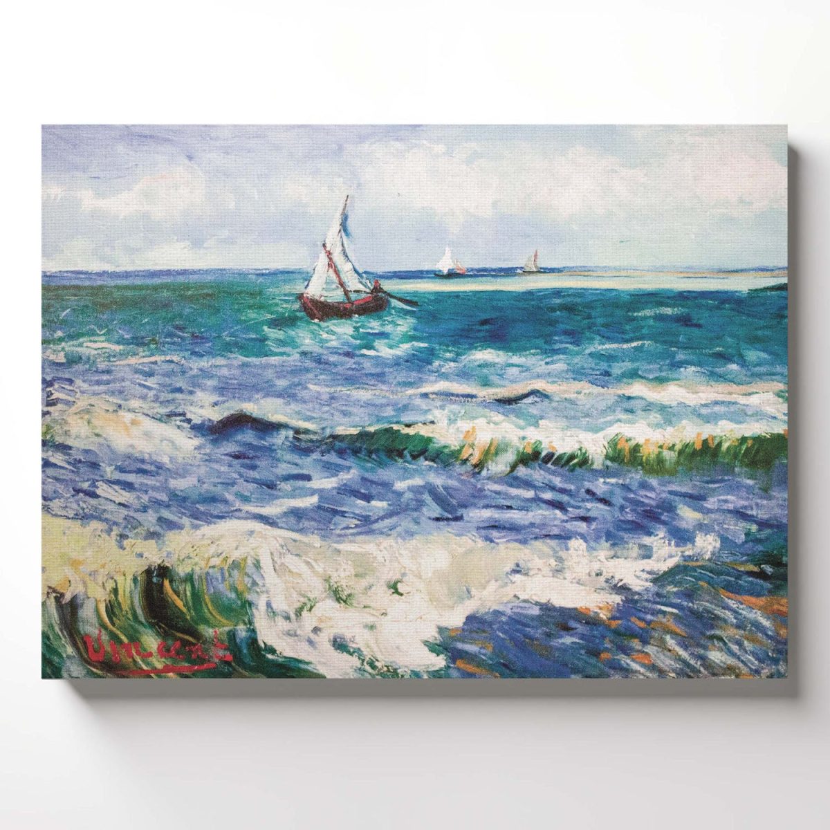 Seascape at Saintes-Maries by Van Gogh Canvas Print, Vicent Van Gog Wall Art, Seascape Wall Art, Seascape Canvas Wall Art, Ready To Hang for Living Room Home Wall Decor, C2449