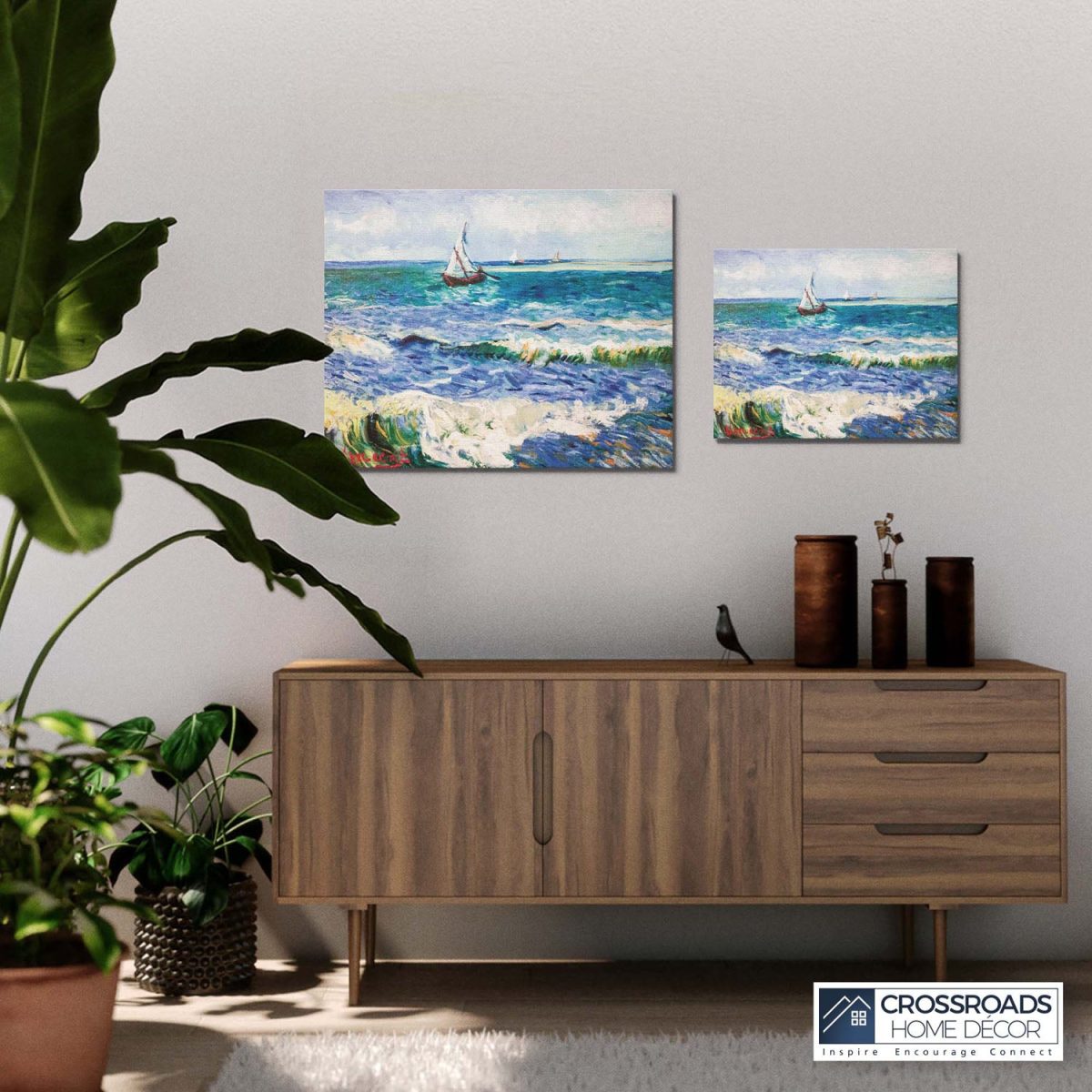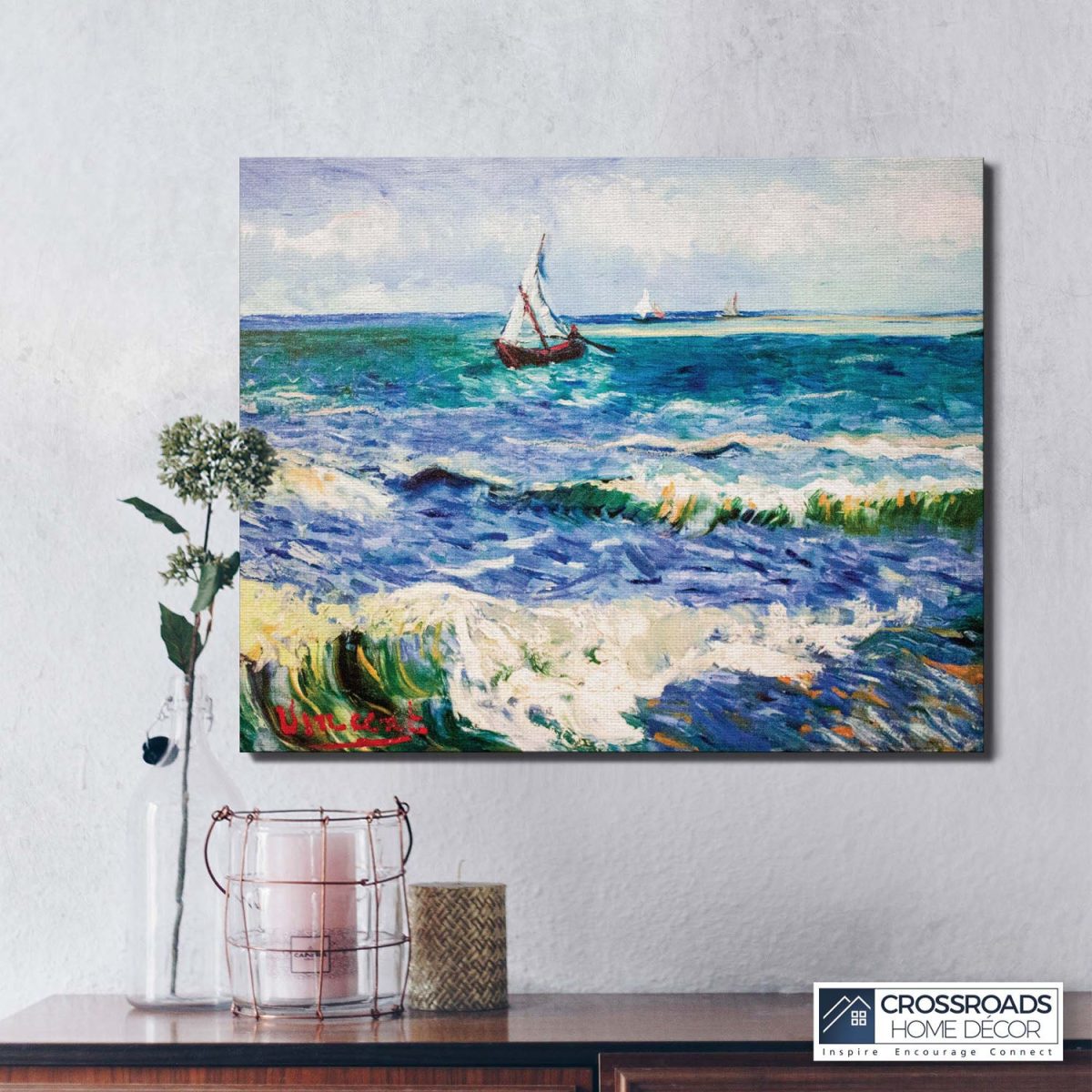 Crossroads Home Decor Seascape at Saintes-Maries by Van Gogh Canvas Print, Vicent Van Gog Wall Art, Seascape Wall Art, Seascape Canvas Wall Art, Ready To Hang for Living Room Home Wall Decor
