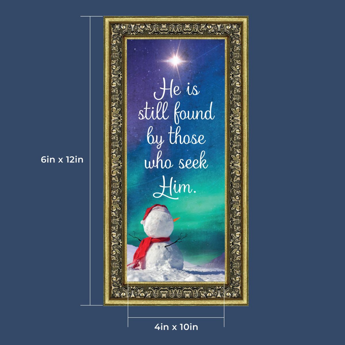 Seek Him, Winter Snowman Decoration, Religious Christmas Picture Frame, 6×12 7425