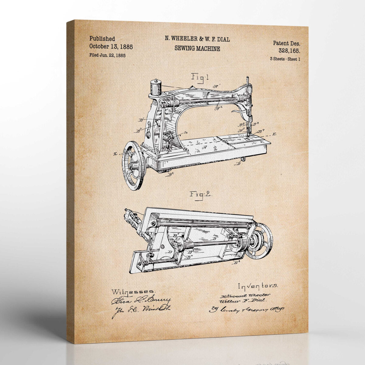Sewing Signs for Home Décor, Patent Sewing Machine Canvas Print, Ready To Hang for Living Room Home Wall Decor, C2667