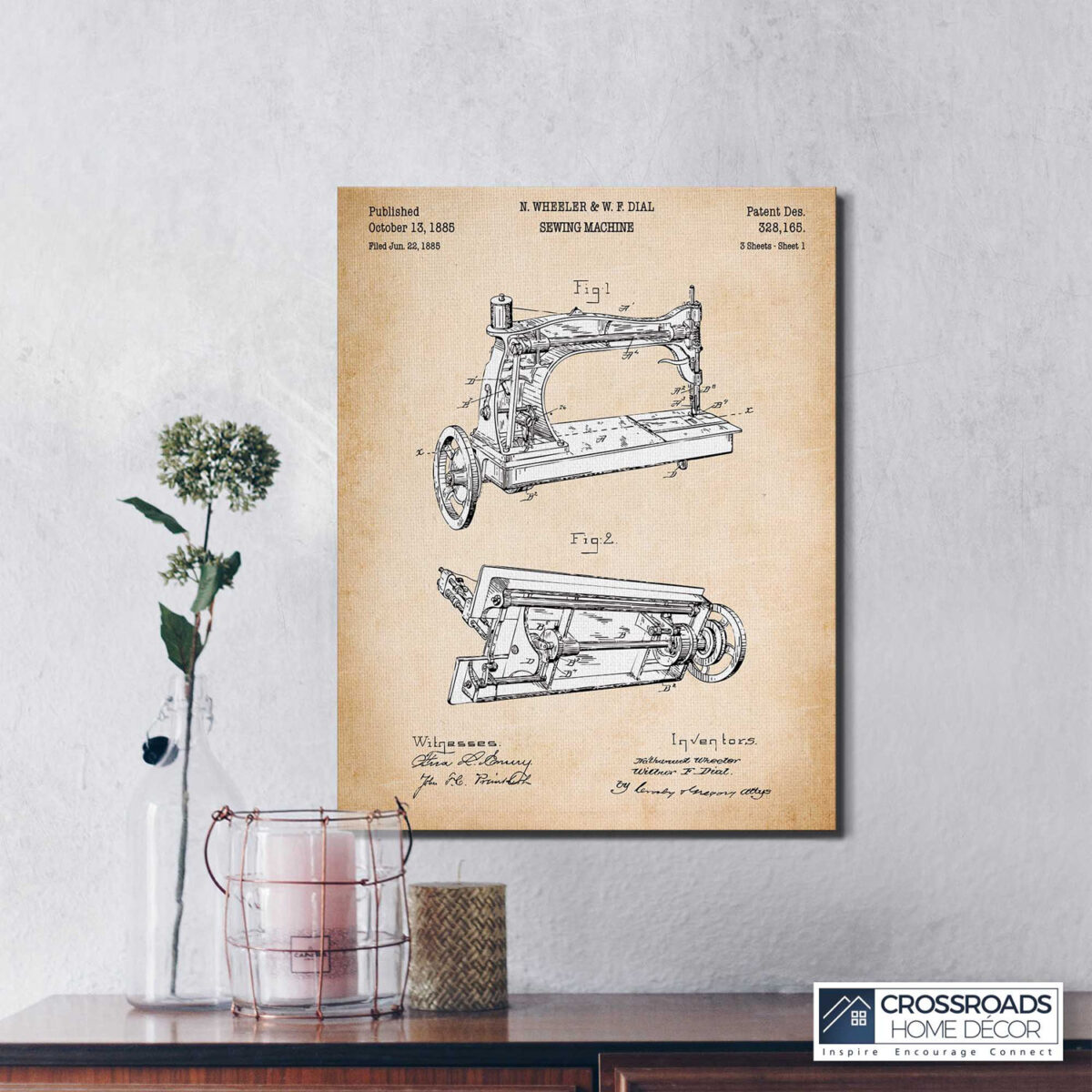 Crossroads Home Décor, Sewing Signs for Home Décor, Patent Sewing Machine Canvas Print, Ready To Hang for Living Room Home Wall Decor