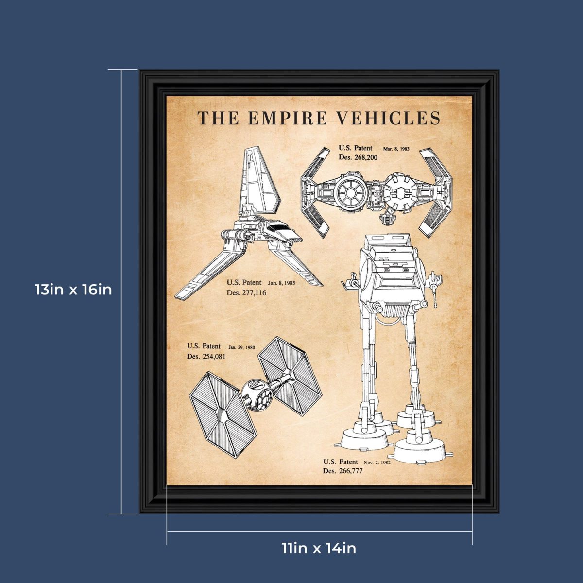 Crossroads Home Decor Star Wars Imperial Shuttle, Tie Fighter and Tie Bomber and at-at Framed Patent Prints Collage, Star Wars Gifts, Man Cave Decor, Add to Your Star Wars Ship Collection