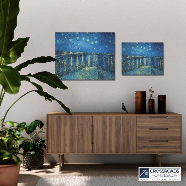 Crossroads Home Decor Starry Night Decor, Van Gogh Wall Art Starry Night Over the Rhone Canvas Print, Van Gogh Canvas Wall Art, Ready To Hang for Living Room Home Wall Decor