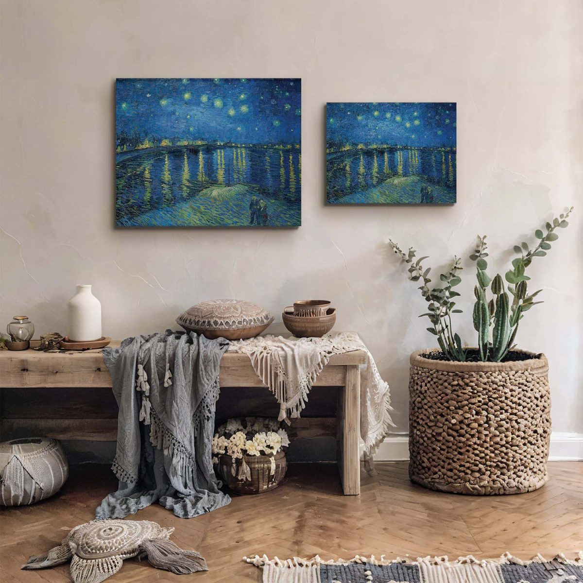 Adorn your walls with the timeless elegance of Starry Night Over the Rhone, a canvas print that embodies the beauty of Van Gogh canvas wall art. This piece, showcasing the tranquil and mesmerizing starry night over Rhone, offers a vibrant splash of color and emotion, perfect for those seeking to enrich their space with starry night decor.