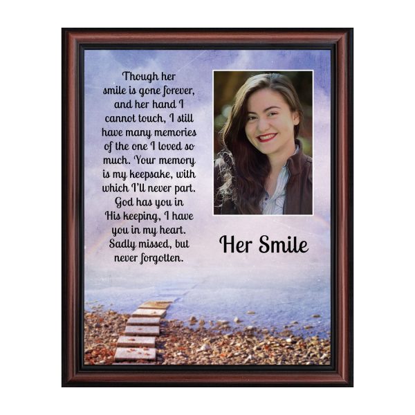 BEAUTIFUL SYMPATHY GIFTS for loss of mother, grandmother, wife or daughter or sister. Remember their beautiful smile with these comforting words. A very unique way to express your heartfelt condolences that honor a friend or loved one. When words are hard to find, use these comforting thoughts to convey your care and concern.