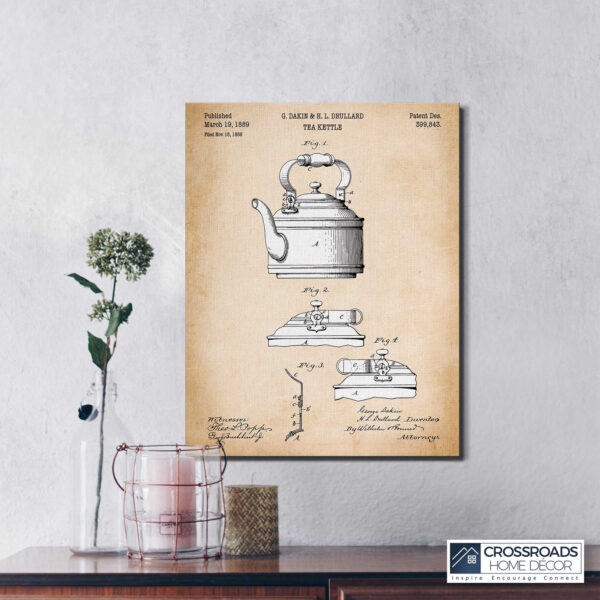 Crossroads Home Décor Tea Signs for Tea Bar, Patent Tea Kettle Canvas Print, Ready To Hang for Living Room Home Wall Decor
