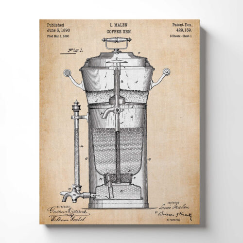 Tea Signs for Tea Bar, Patent Tea Kettle Canvas Print, Ready To Hang for Living Room Home Wall Decor, C2328
