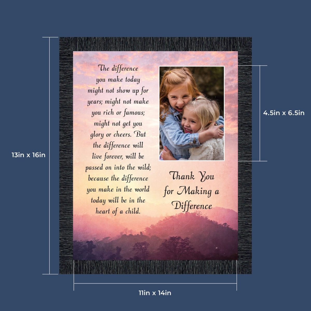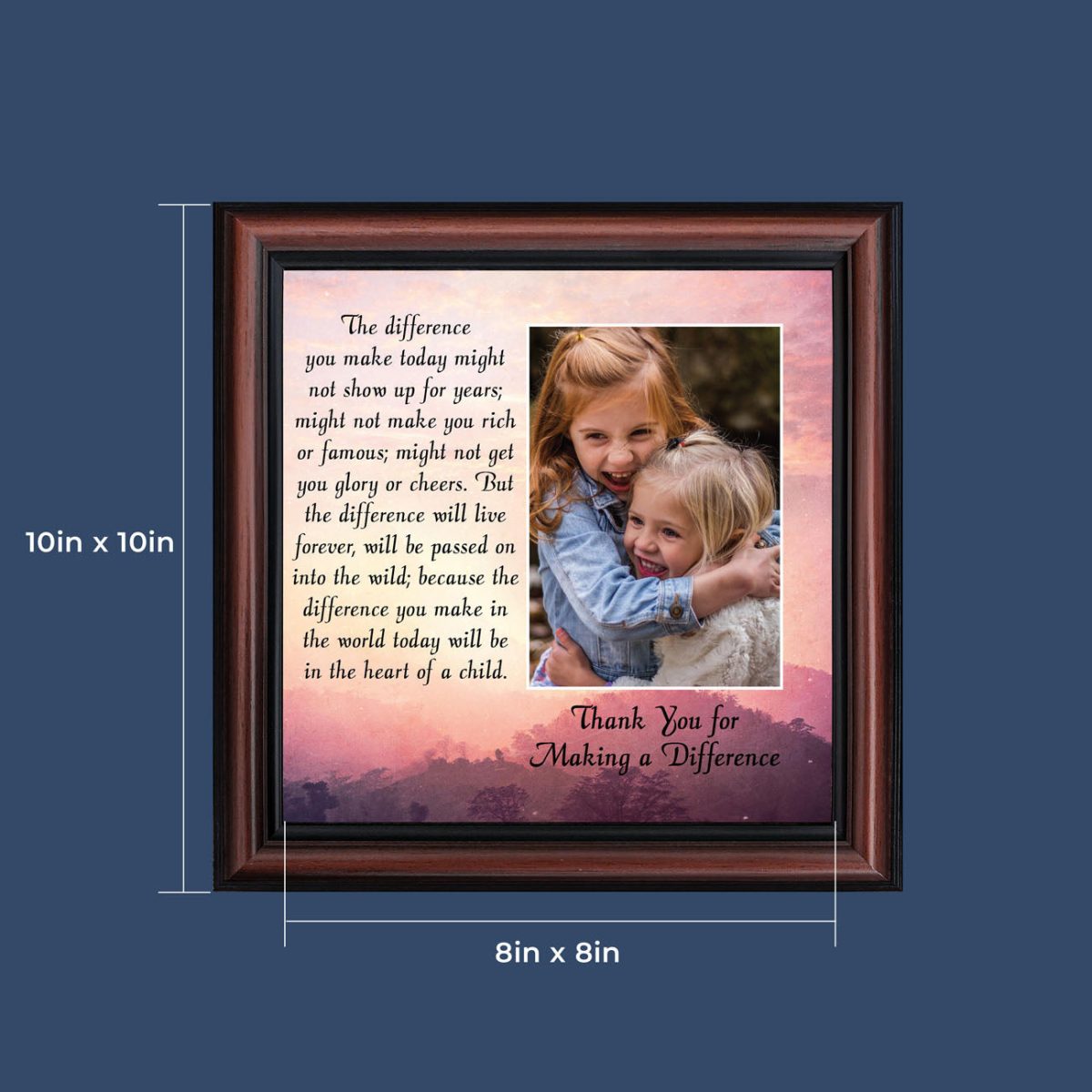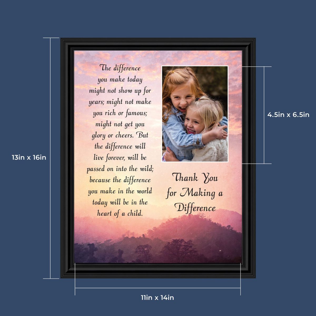 ADDITIONAL OPTIONS AND SIZES AVAILABLE:Look for our 4×10, 8×8, 11×14 options that are ready to give- no need to add your own picture. There is also an 11×14 version that allows you to add a 5×7 photo when you receive your frame.