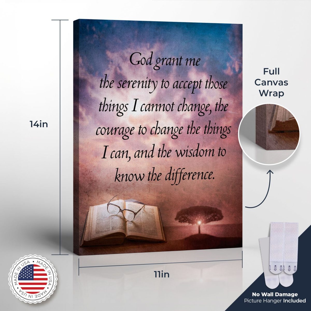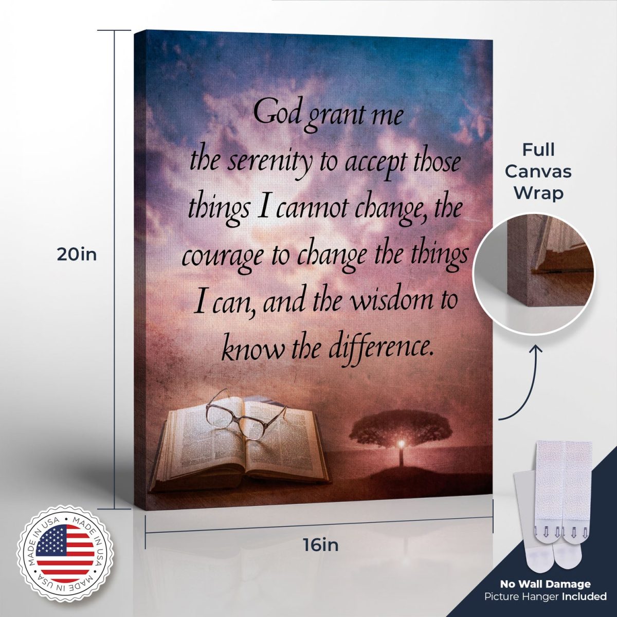 Ready to Hang with No Wall Damage Picture Hanger Included. No hammers, nails or screws required! High-definition printing on poly-cotton matte canvas creating a vibrant and rich colors piece for your wall. The canvas is gallery wrapped onto our 16×20 wooden frame. Made in our family workshop in Northeast Ohio. Item is carefully packed with bubble wrap ensuring its safety during shipping. Proudly Made in the USA!