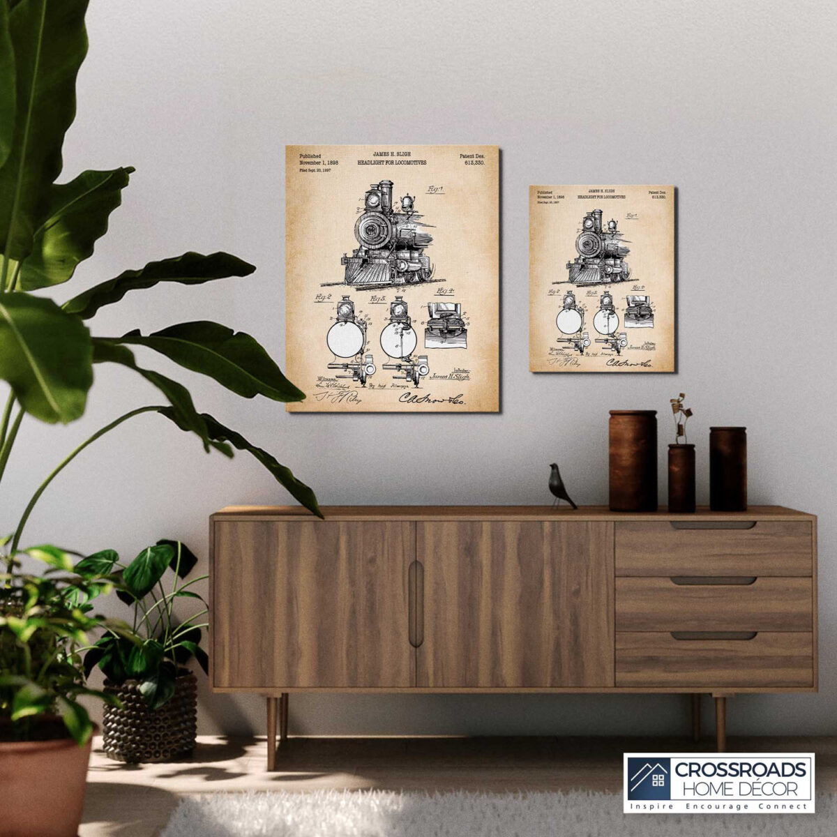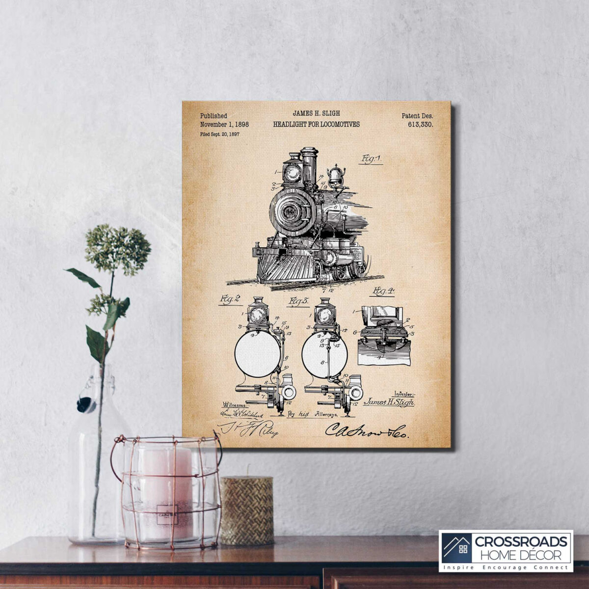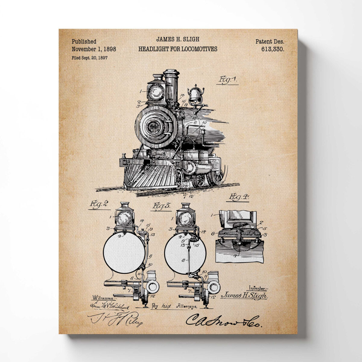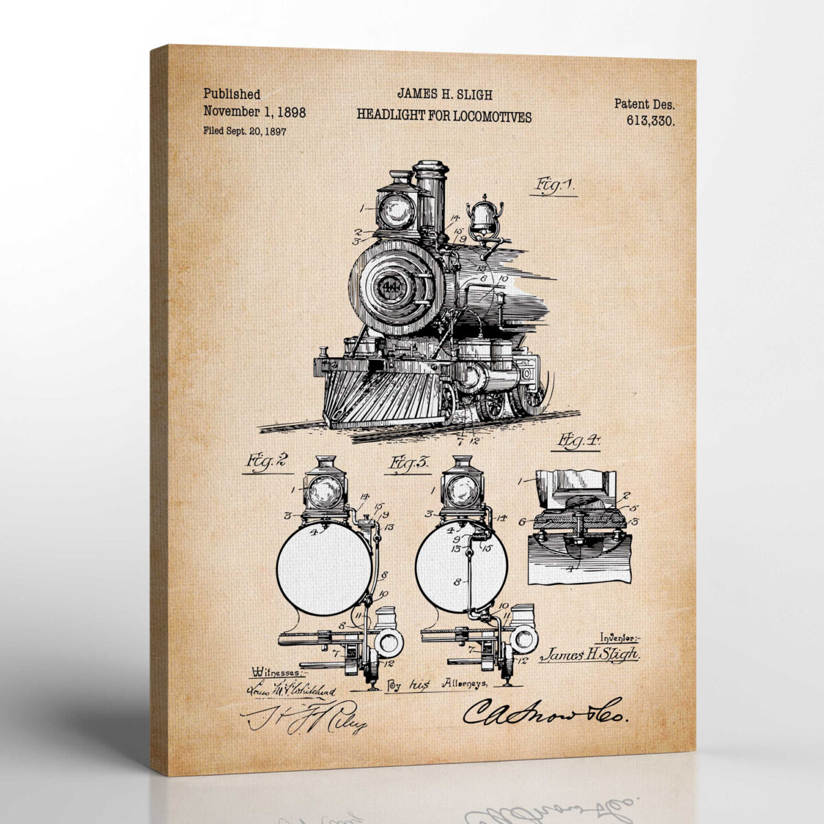 Train Picture Wall Art, Locomotive Patent Canvas Print, Ready To Hang for Living Room Home Wall Decor, C2659