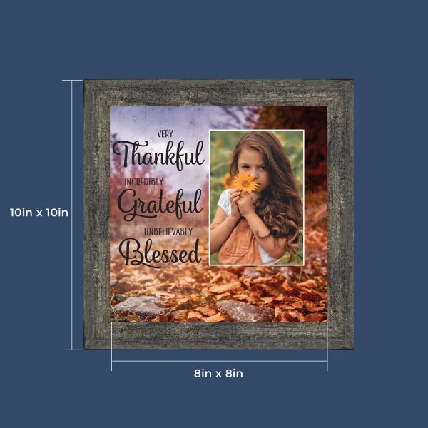 - Picture opening for you to add your own picture is 3.5″ x 5″ which works great for 4″ x 6″ pictures.This finished frame size is 10″ x 10″ and holds an 8″ x 8″ print.