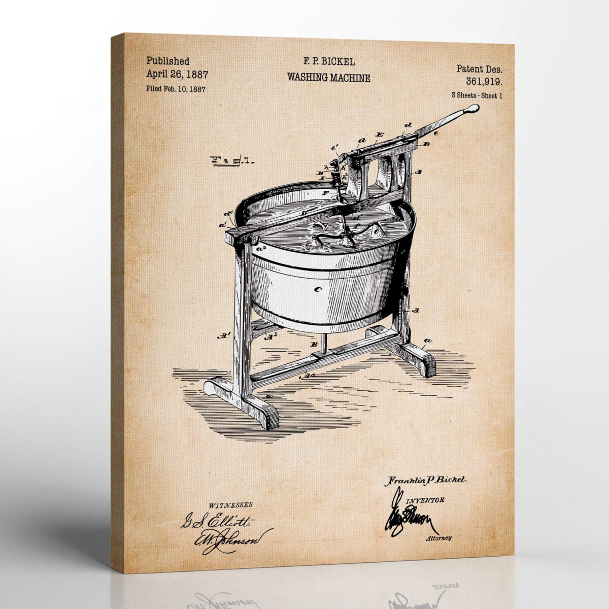 Vintage Laundry Room Decor, Patent Vintage Washing Machine Canvas Print, Ready To Hang for Living Room Home Wall Decor, C2674