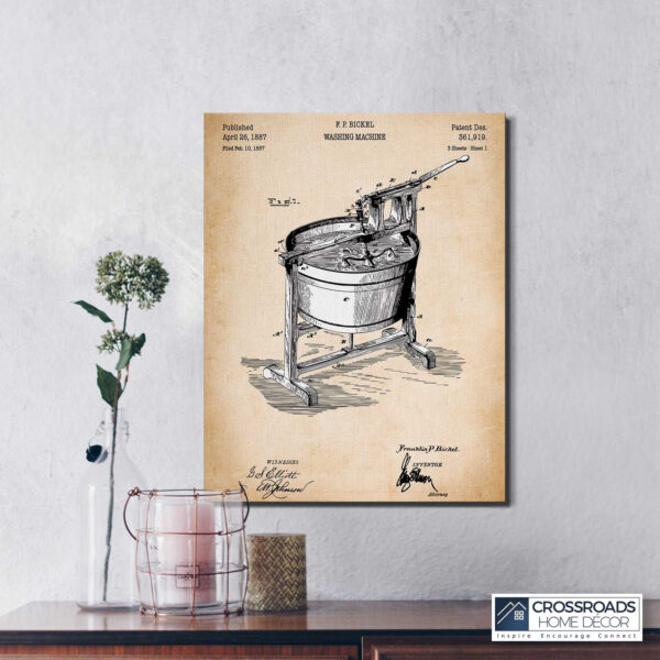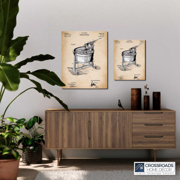 Crossroads Home Décor, Vintage Laundry Room Decor, Patent Vintage Washing Machine Canvas Print , Ready To Hang for Living Room Home Wall Decor