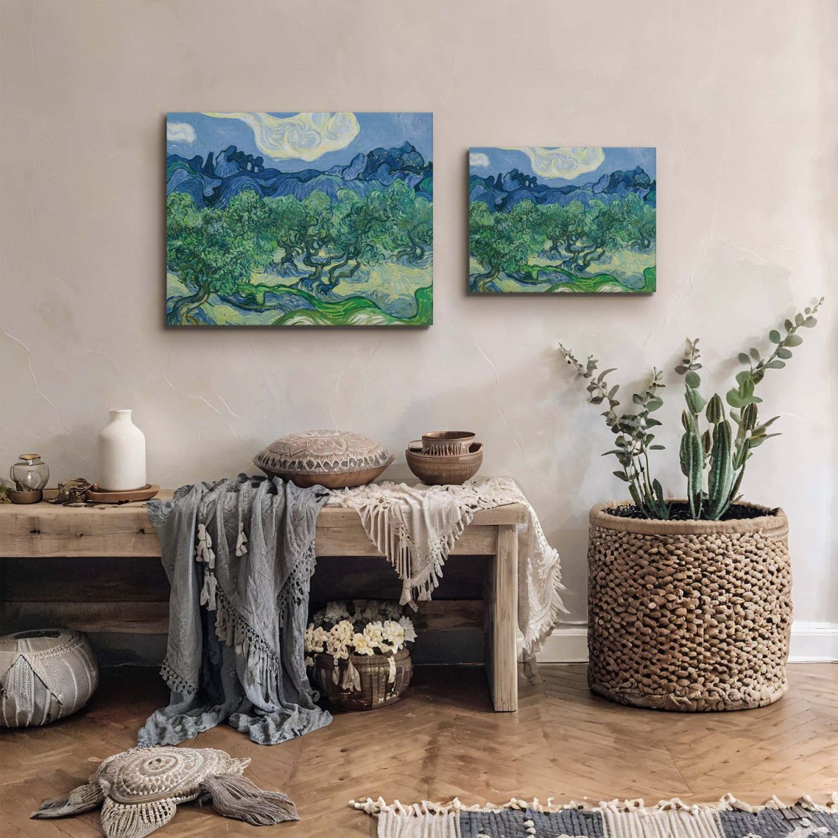 Decorate your home with The Olive Trees, a striking example of Vincent Van Gogh wall art. This Van Gogh canvas captures the tranquil yet powerful essence of the olive groves, offering a stunning piece of Van Gogh paintings that complements any wall decor for office or living space.