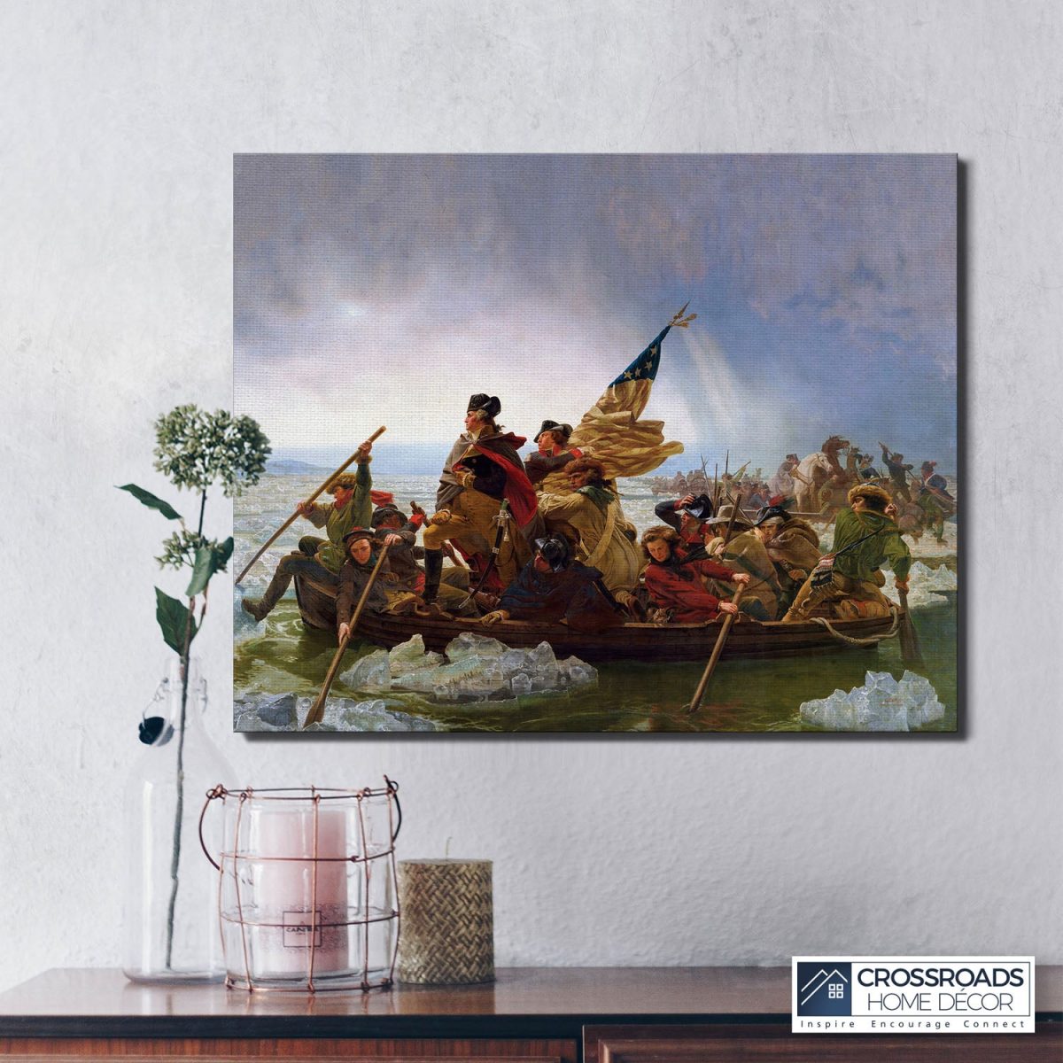 Crossroads Home Decor Washington Crossing the Delaware Canvas Frame, George Washington Painting, Washington Canvas, Washingtons Crossing, Ready To Hang for Living Room Home Wall Art