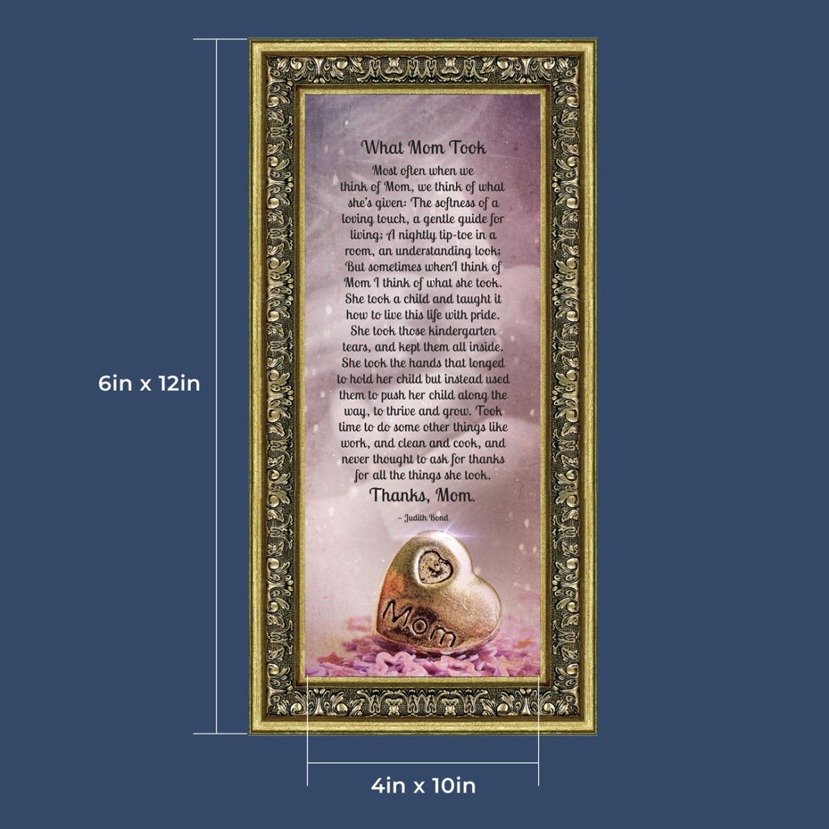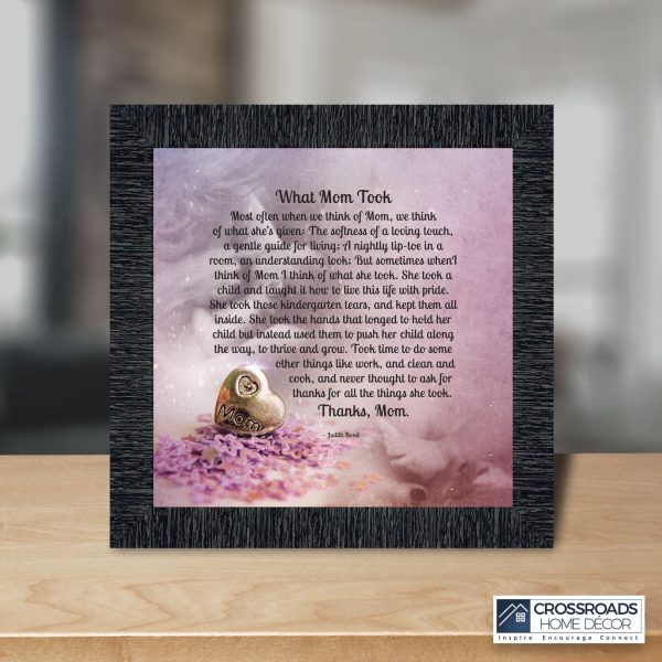 What Mom Took, Thanking Mother for Everything She Gave to Her Family , Framed Poem, 10×10 6363
