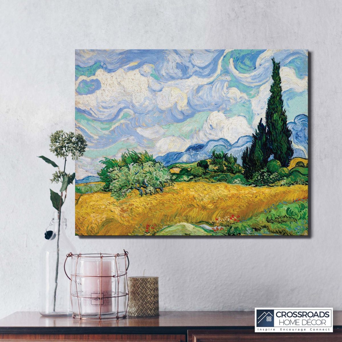 Crossroads Home Decor Wheat Field with Cypress by Van Gogh, Van Gogh Cypresses, Painting Wall Art, Van Gogh Wall Art, Ready To Hang for Living Room Home Wall Decor