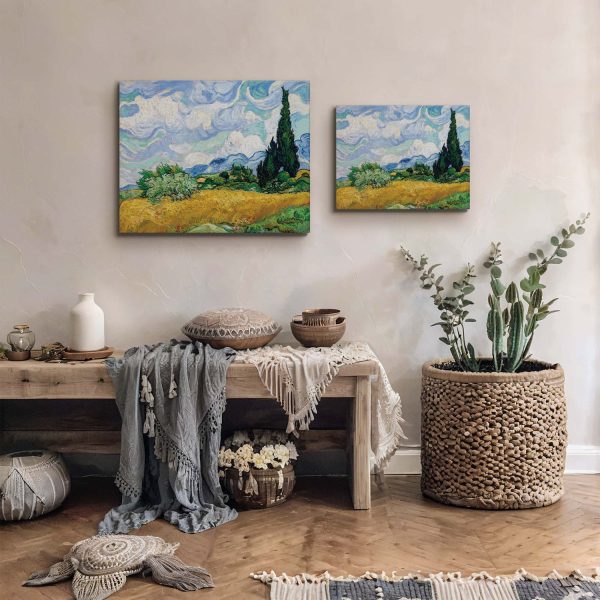 Dive into the swirling skies and lush landscapes of Van Gogh wall art with our Wheat Field with Cypress canvas print. This Van Gogh canvas wall art piece is a vivid portrayal of nature’s beauty, as captured by Vincent Van Gogh’s unique brushstrokes. Perfect for anyone looking to infuse their space with the timeless appeal of painting wall art, this piece brings a piece of history into your home.