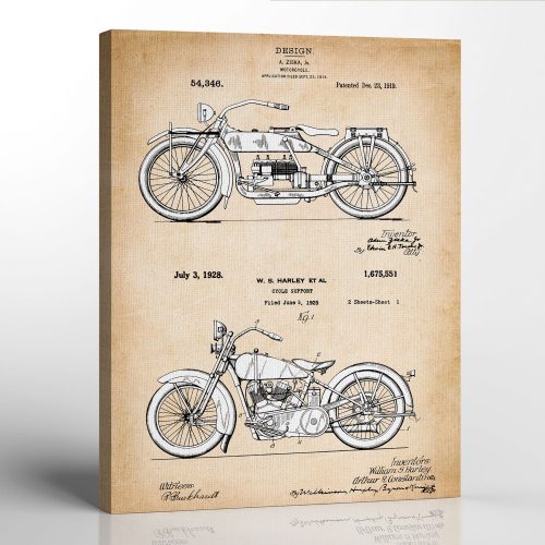 Harley Davidson Patent Canvas Frame, Harley Davidson Gifts for Men, Harley Davidson Gifts for Women, Motorcycle Wall Art,Ready To Hang for Living Room Home Wall Decor, C2139