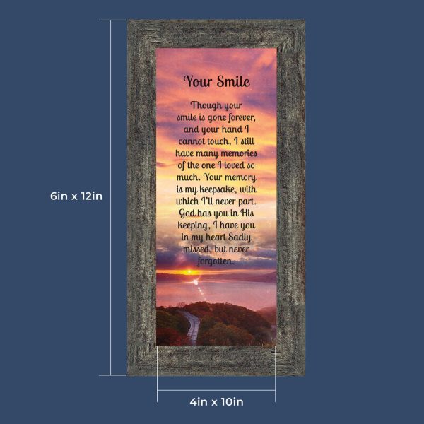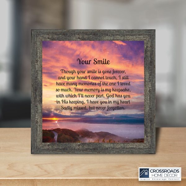 Sympathy Gift Picture Frames In Memory of Loved One, Memorial Gifts to Add to Your Sympathy Gift Baskets or Condolence Card, Loss of Father Gift, Bereavement Gifts, “Your Smile” Framed Poem, 6351