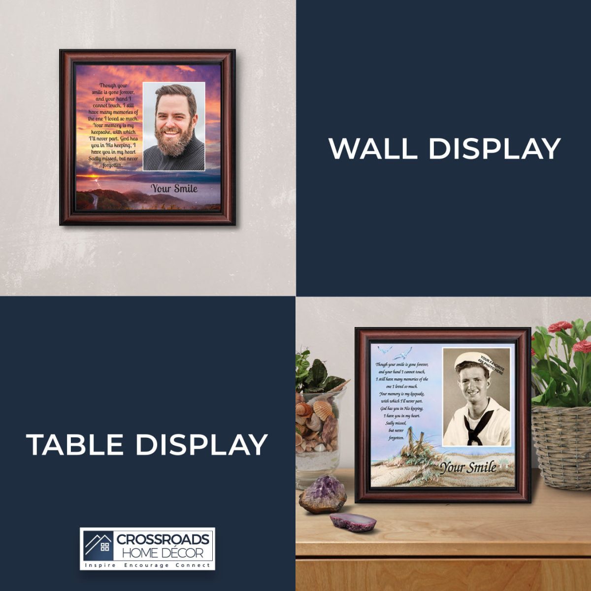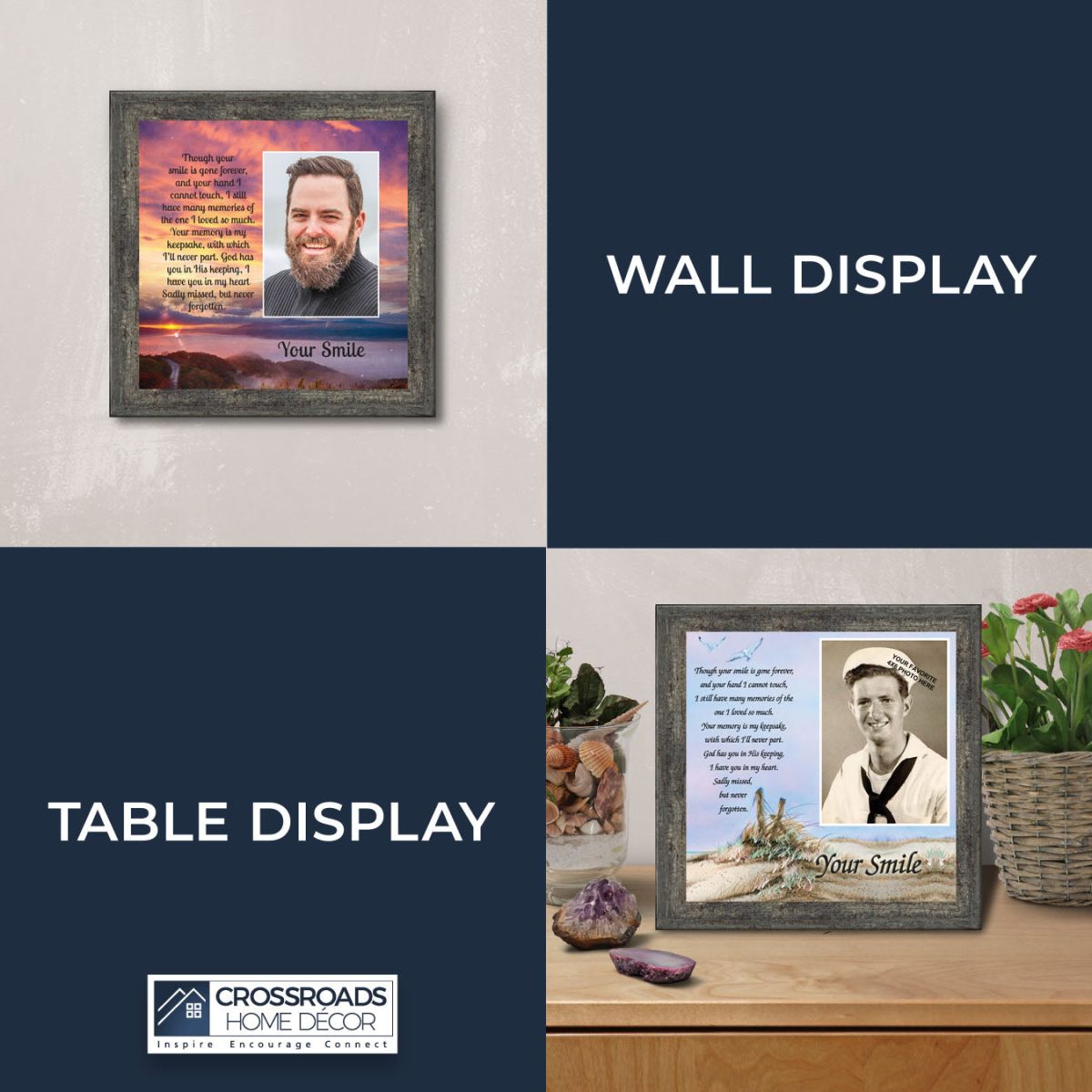 THIS PICTURE FRAMEcan be displayed next to your funeral guest books to welcome your visitors to the wake, visitation hours, funeral, or Celebration of Life service. This memorial piece can be used with your funeral decorations and then given to the family to be an everyday reminder of their loved one and his or her beautiful smile. This frame will also make a nice in loving memory wedding sign to honor someone who has passed away who was influential in your life.