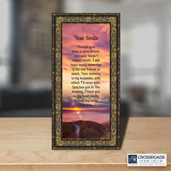 Sympathy Gift Picture Frames In Memory of Loved One, Memorial Gifts to Add to Your Sympathy Gift Baskets or Condolence Card, Loss of Father Gift, Bereavement Gifts, “Your Smile” Framed Poem