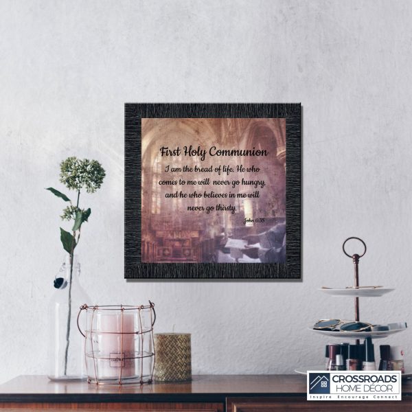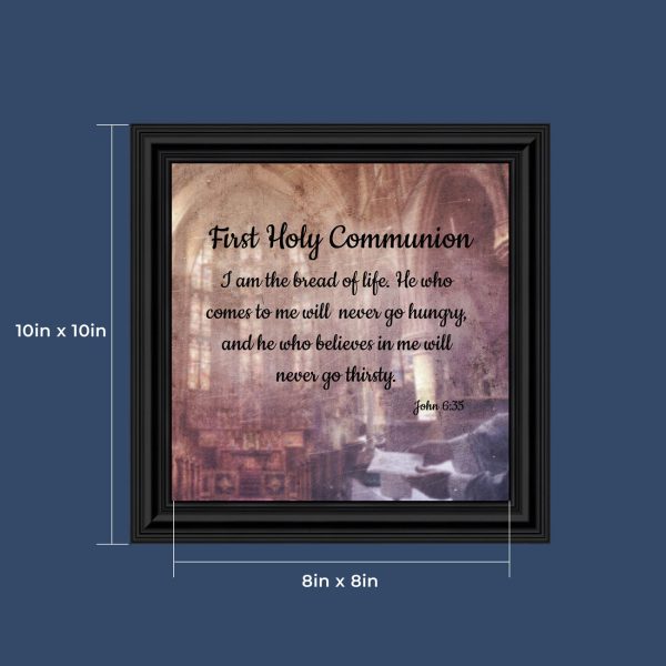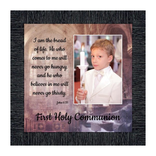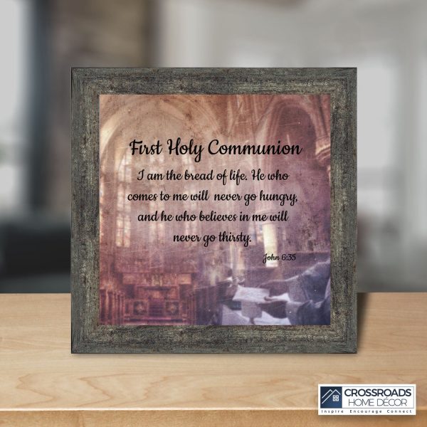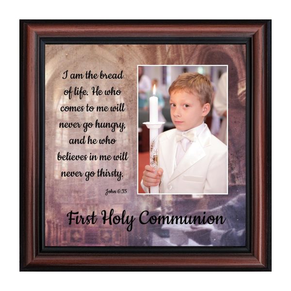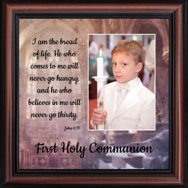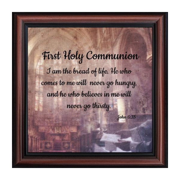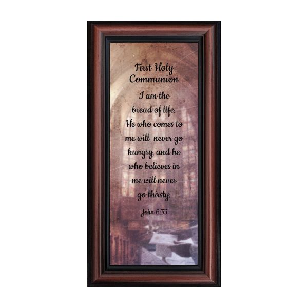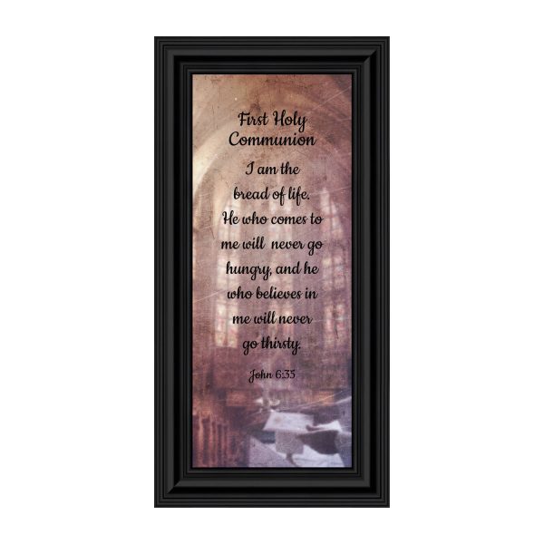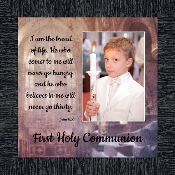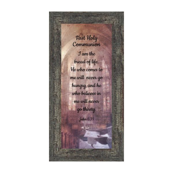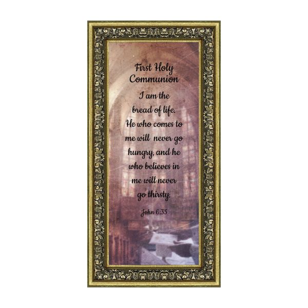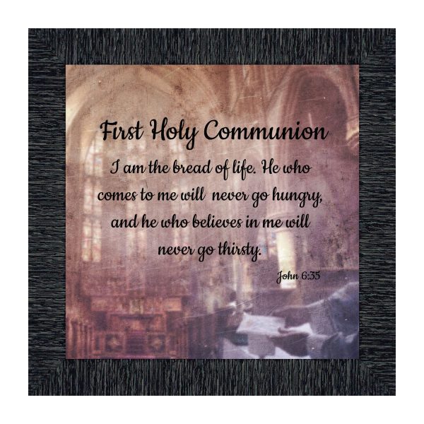 - Picture framed scripture used during a childs first communion. Celebration of the Catholic sacrament of Holy Communion