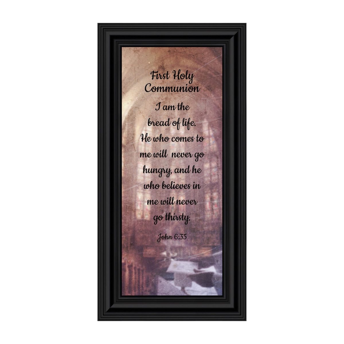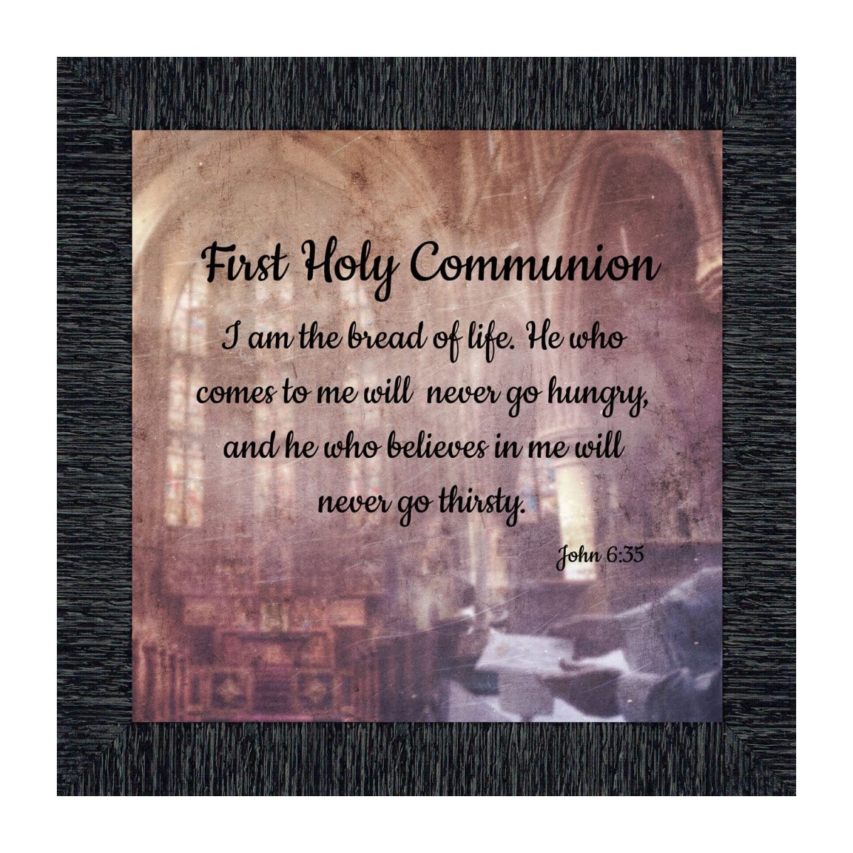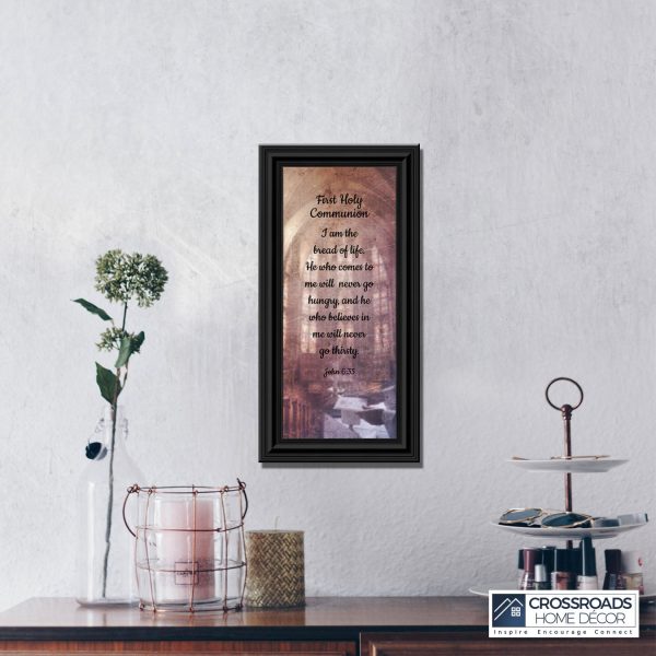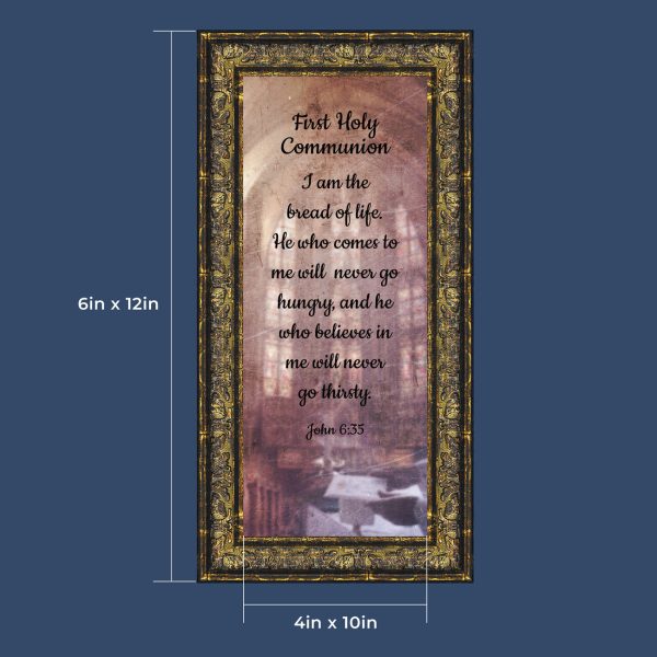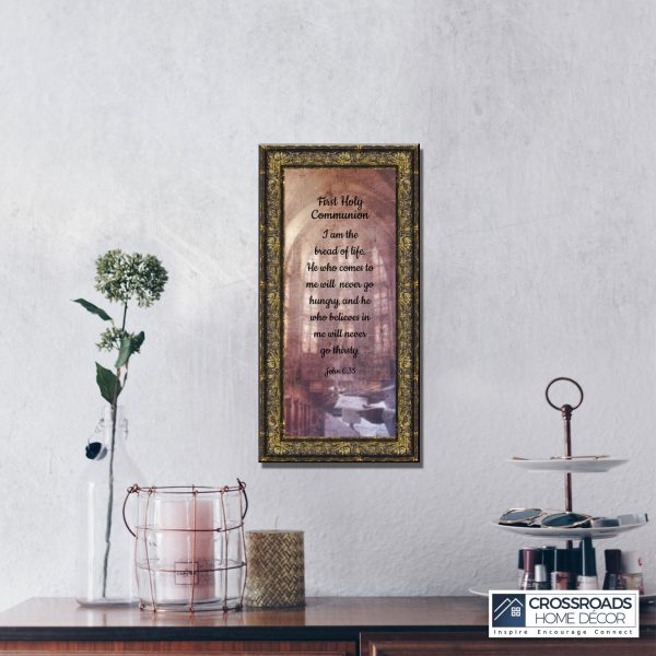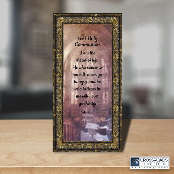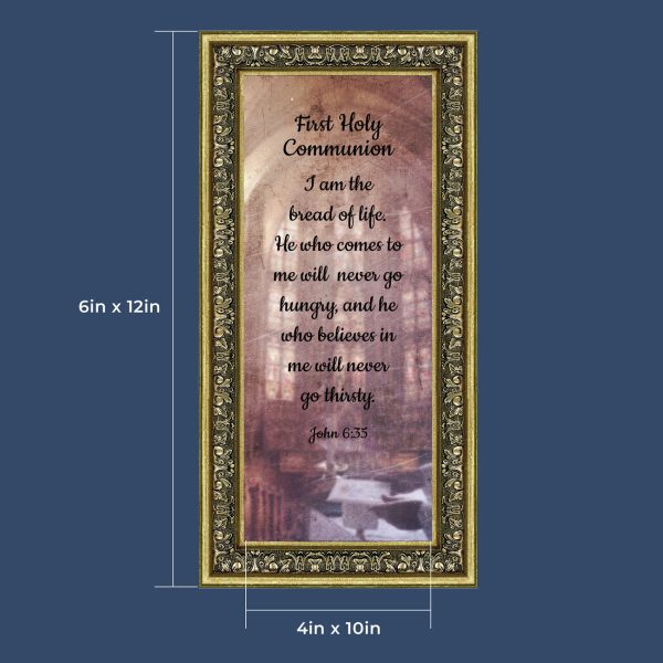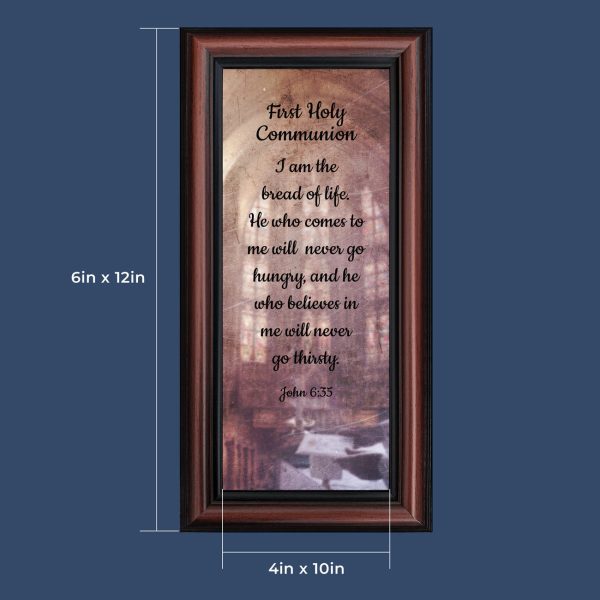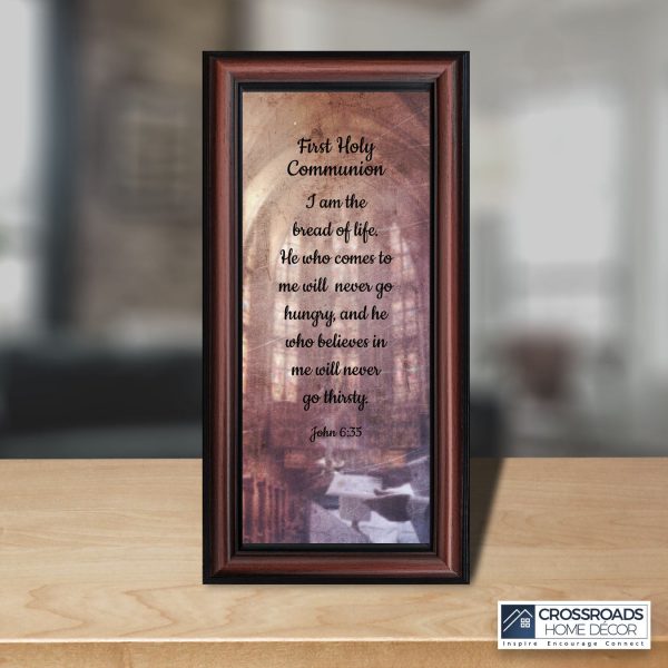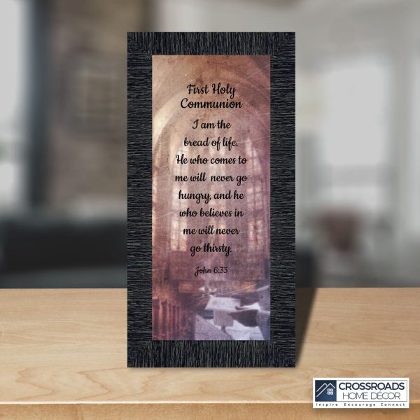 - Picture framed scripture used during a childs first communion. Celebration of the Catholic sacrament of Holy Communion