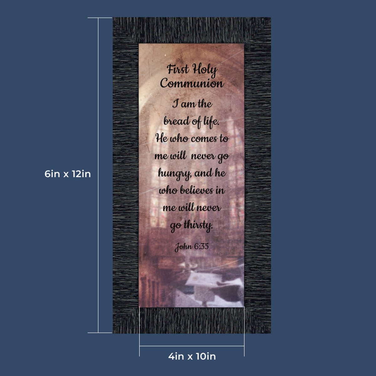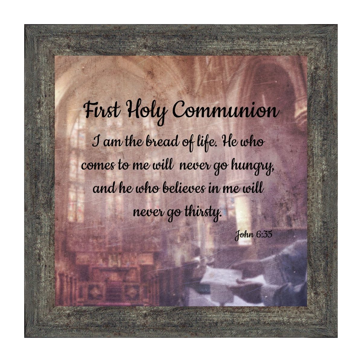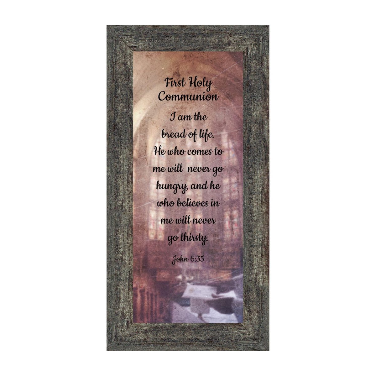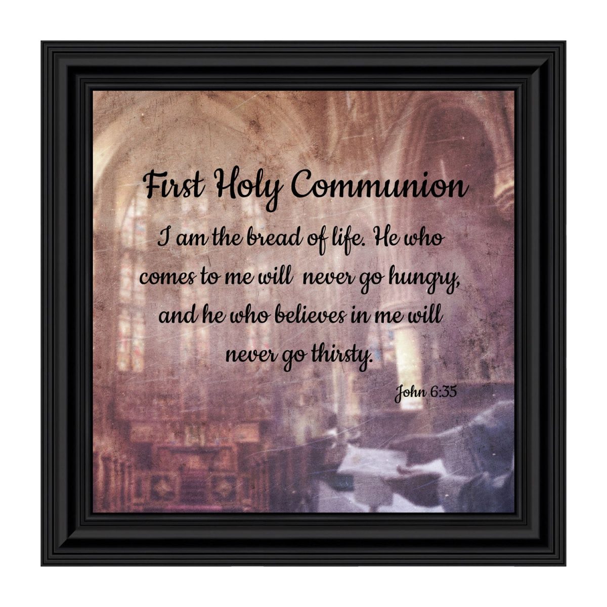 - Picture framed scripture used during a childs first communion. Celebration of the Catholic sacrament of Holy Communion