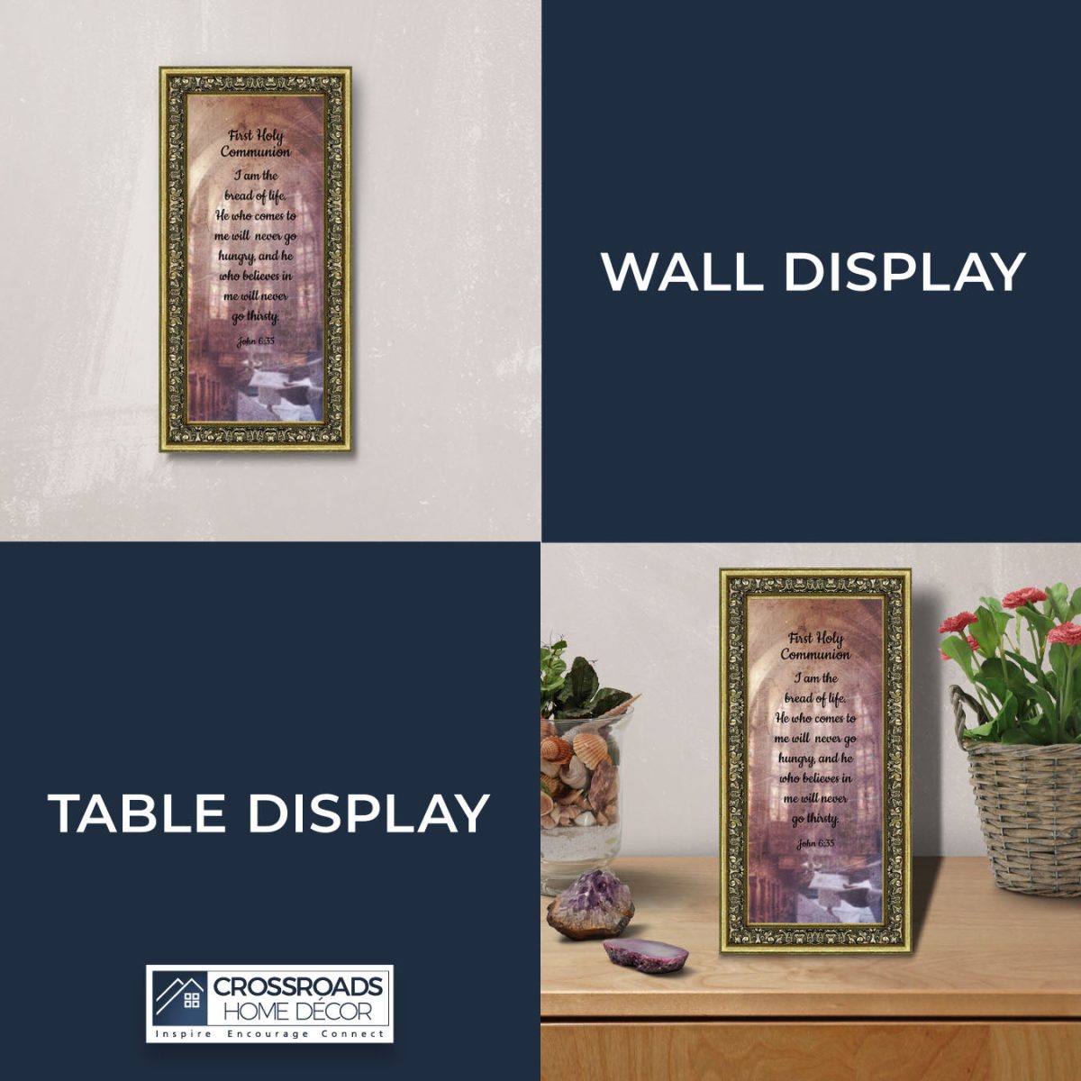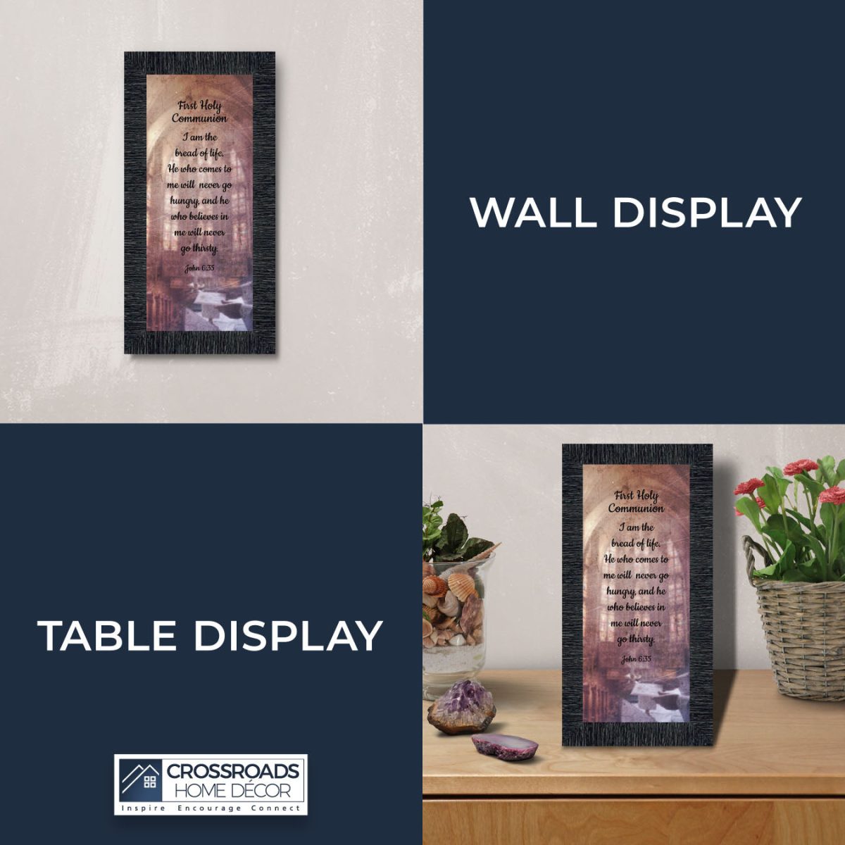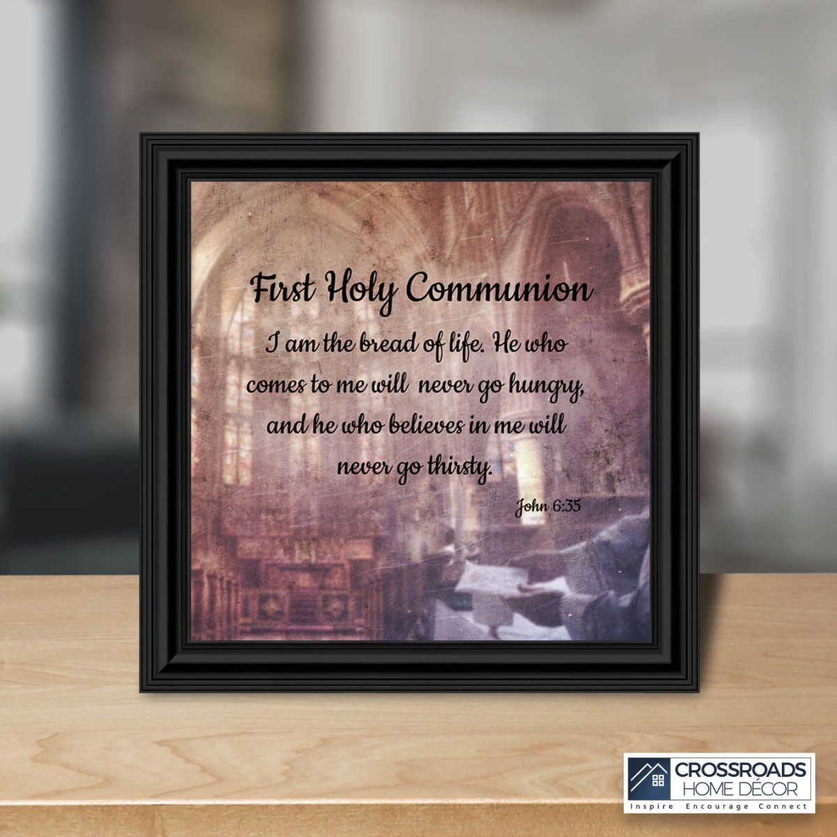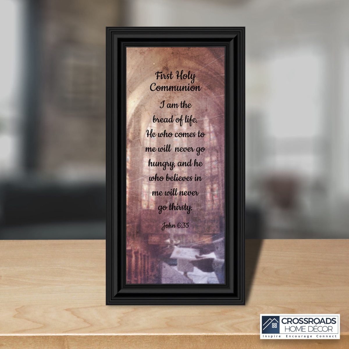 - Picture framed scripture used during a childs first communion. Celebration of the Catholic sacrament of Holy Communion