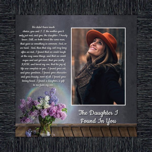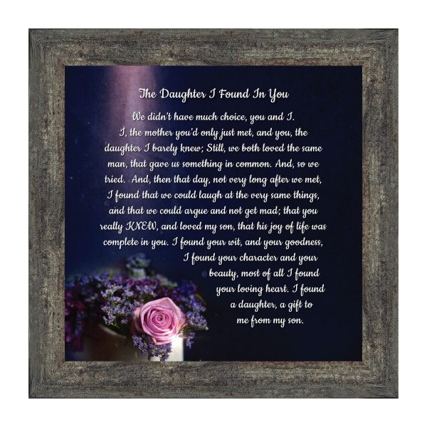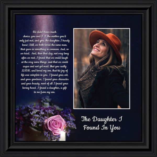 Daughter In Law Gifts from Mother In Law, Gift for Future Daughter In Law, Bonus Daughter Gifts from Mother of the Groom, Daughter In Law Birthday Card, The Daughter I Found In You Framed Home Decor, 6425