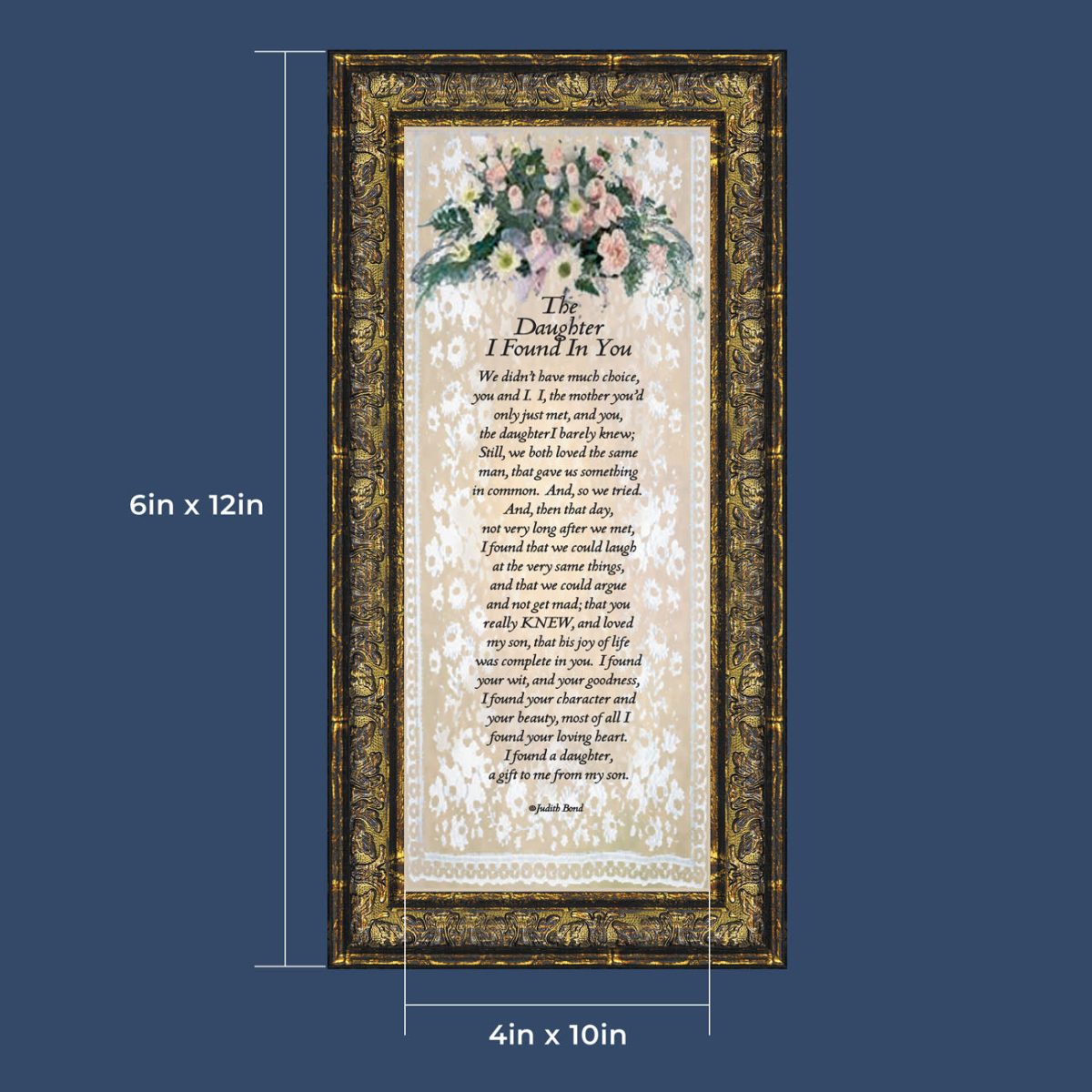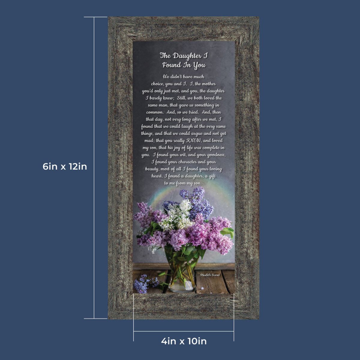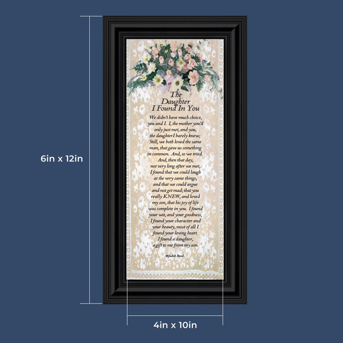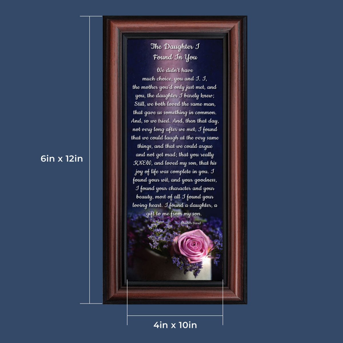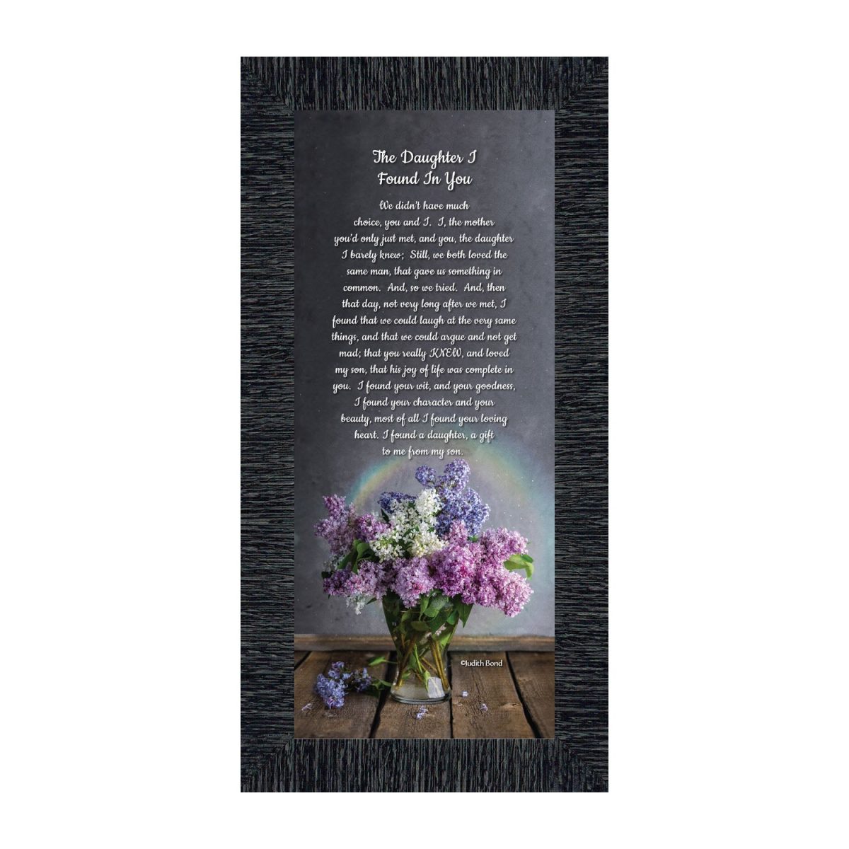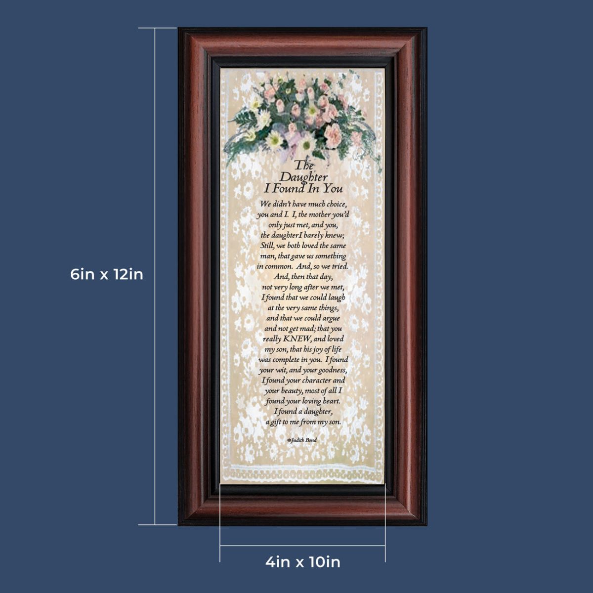 “YOU BECAME MY DAUGHTER” is the perfect complement to our mother in law version, “You Became My Mother”. Also available for your in-laws; “You Became My Father”, “You Became My Son”, “You Became My Sister” and ‘You Became My Brother”. This series is the perfect way to welcome new members of your family now or in years to come.