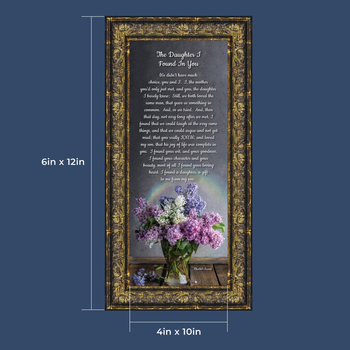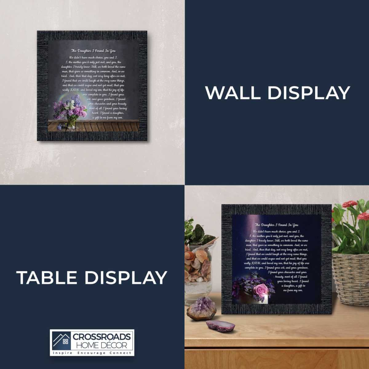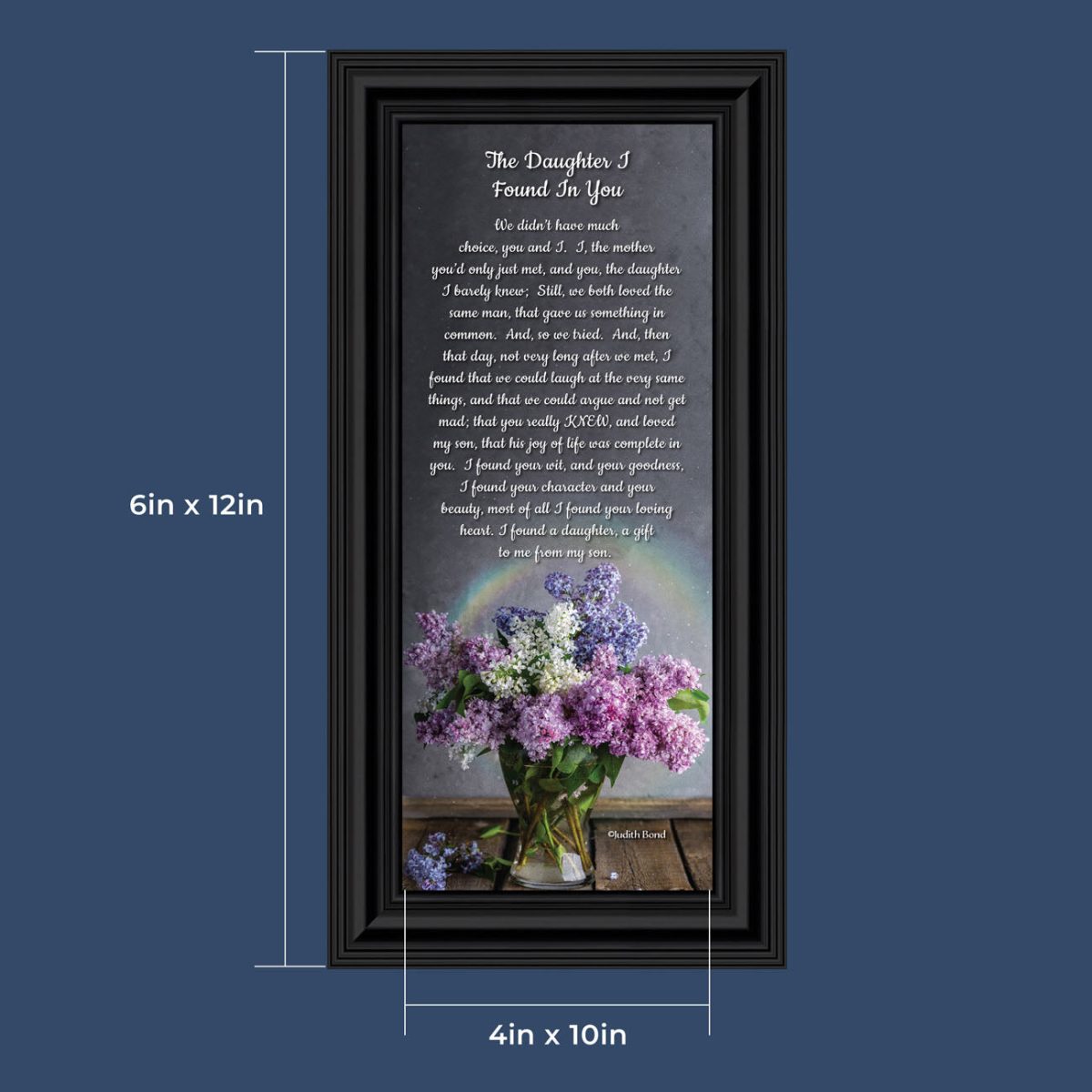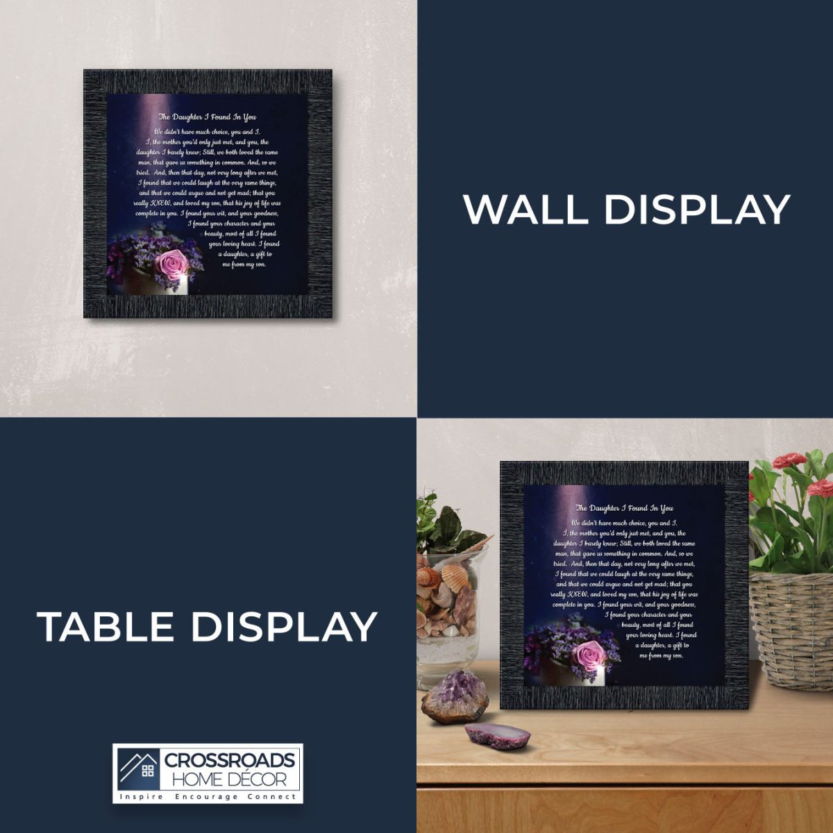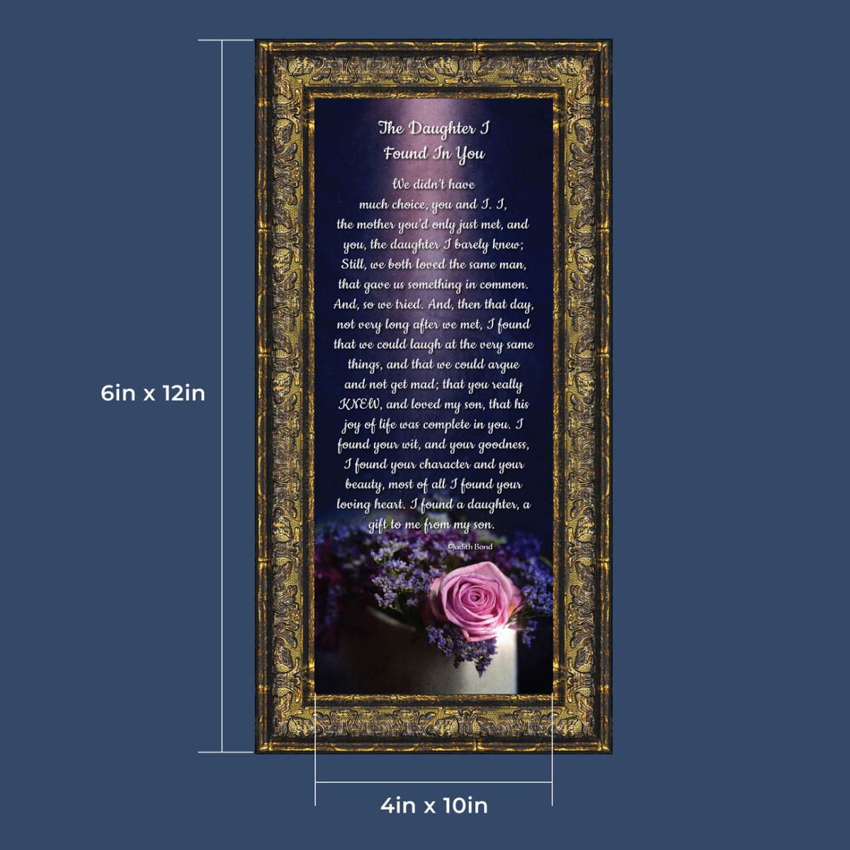 “YOU BECAME MY DAUGHTER” is the perfect complement to our mother in law version, “You Became My Mother”. Also available for your in-laws; “You Became My Father”, “You Became My Son”, “You Became My Sister” and ‘You Became My Brother”. This series is the perfect way to welcome new members of your family now or in years to come.