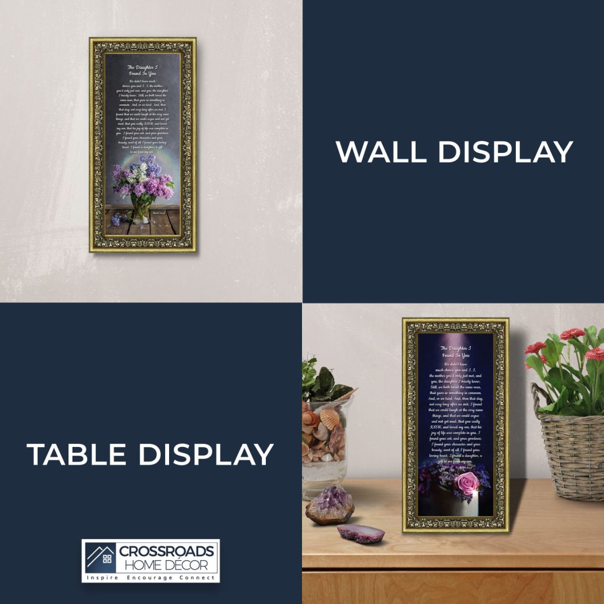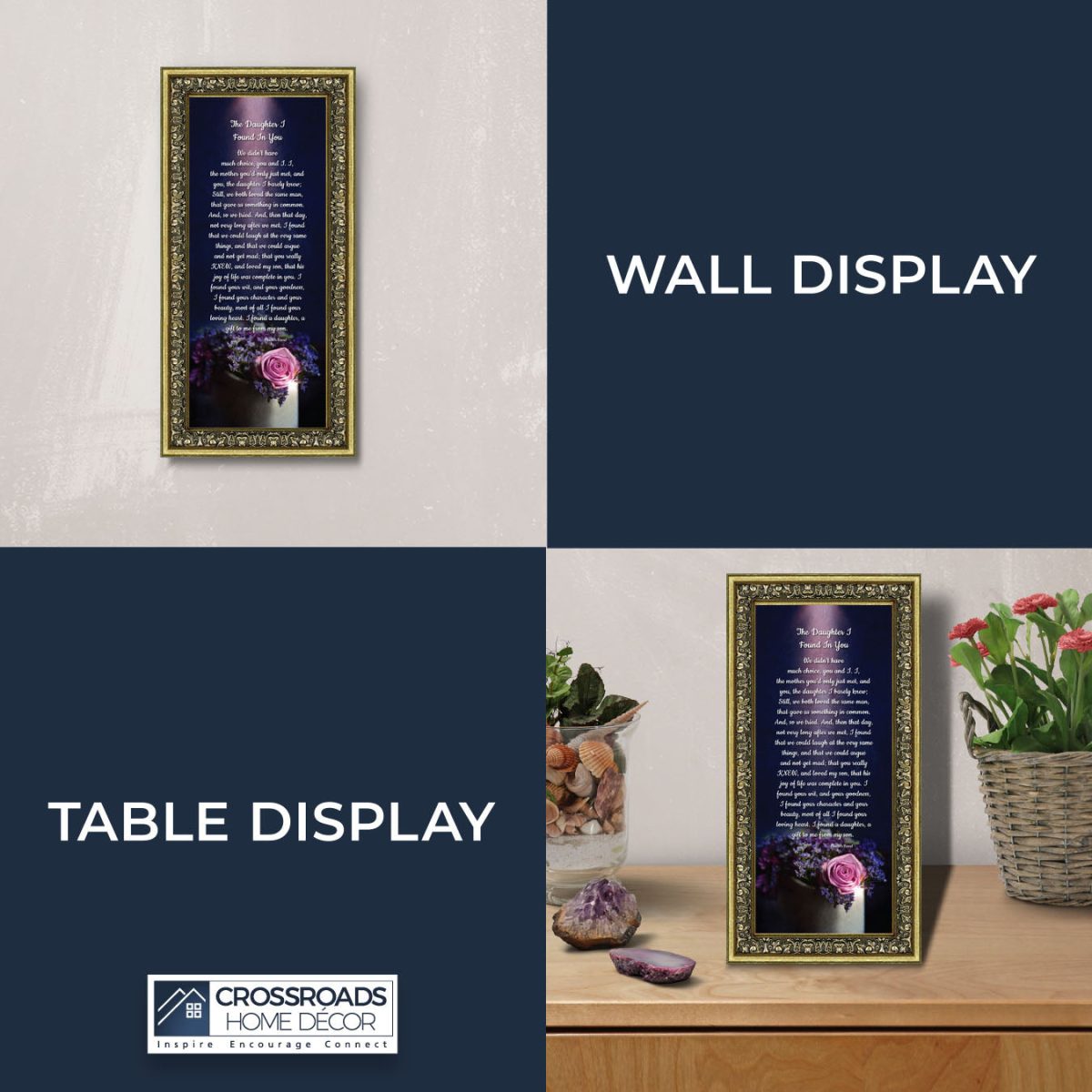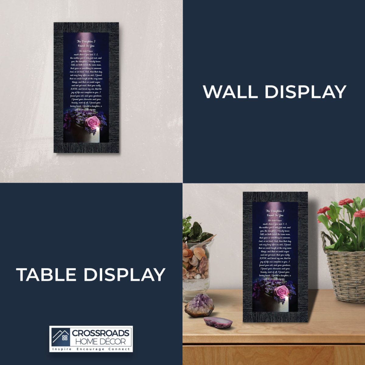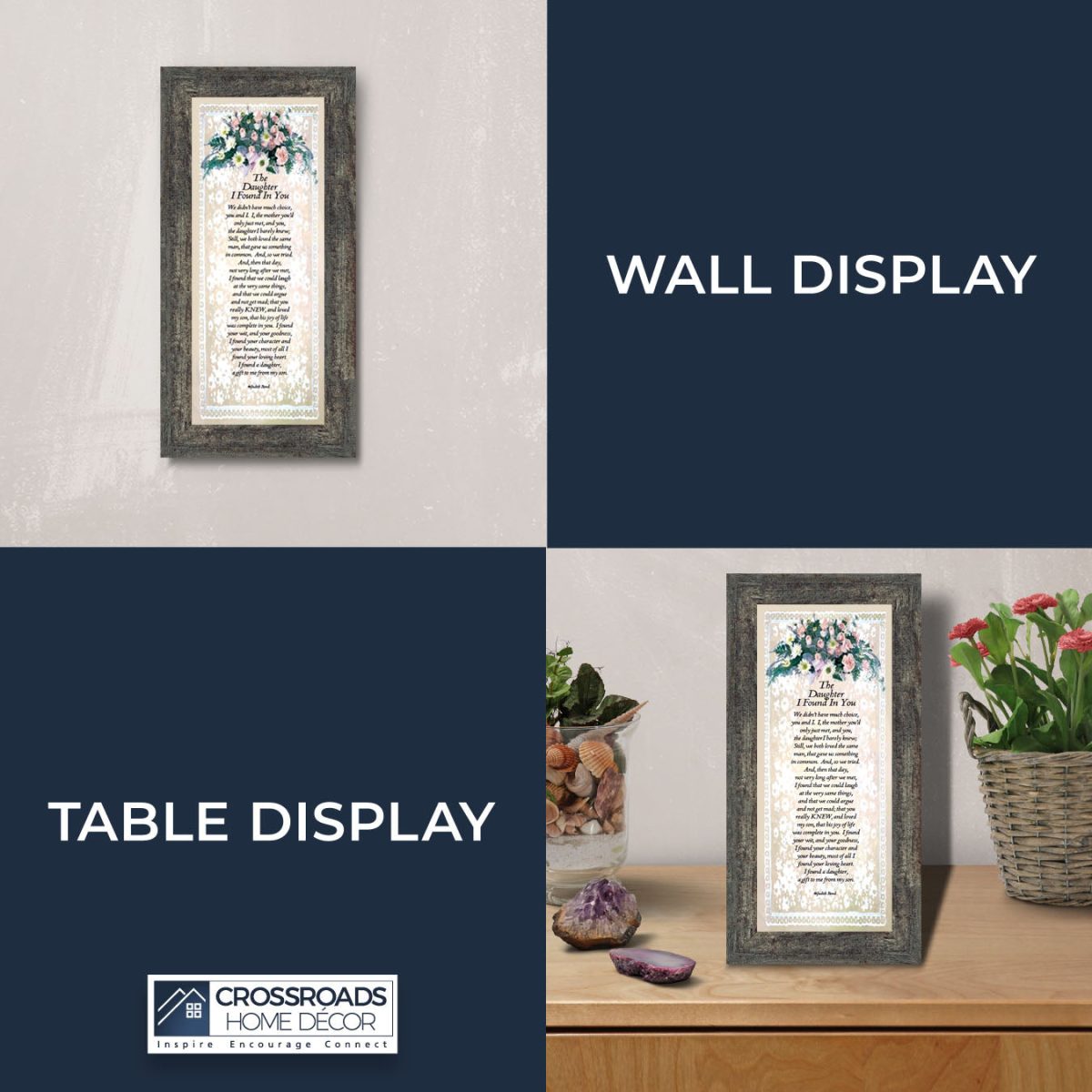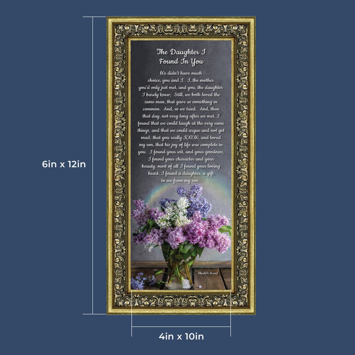 “YOU BECAME MY DAUGHTER” is the perfect complement to our mother in law version, “You Became My Mother”. Also available for your in-laws; “You Became My Father”, “You Became My Son”, “You Became My Sister” and ‘You Became My Brother”. This series is the perfect way to welcome new members of your family now or in years to come.