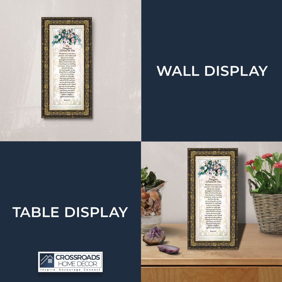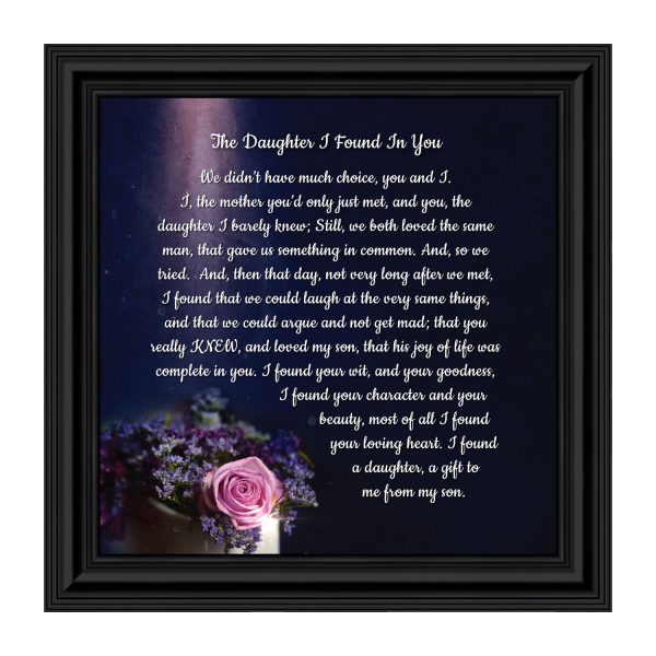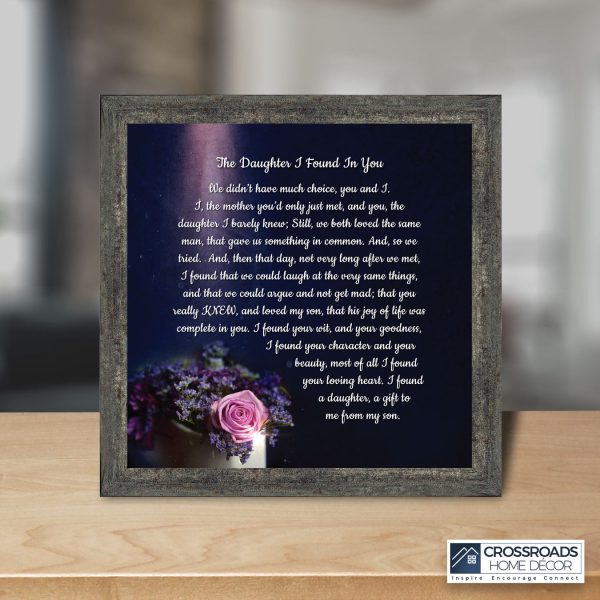 Crossroads Home Decor Daughter In Law Gifts from Mother In Law, Gift for Future Daughter In Law, Bonus Daughter Gifts from Mother of the Groom, Daughter In Law Birthday Card, The Daughter I Found In You Framed Home Decor