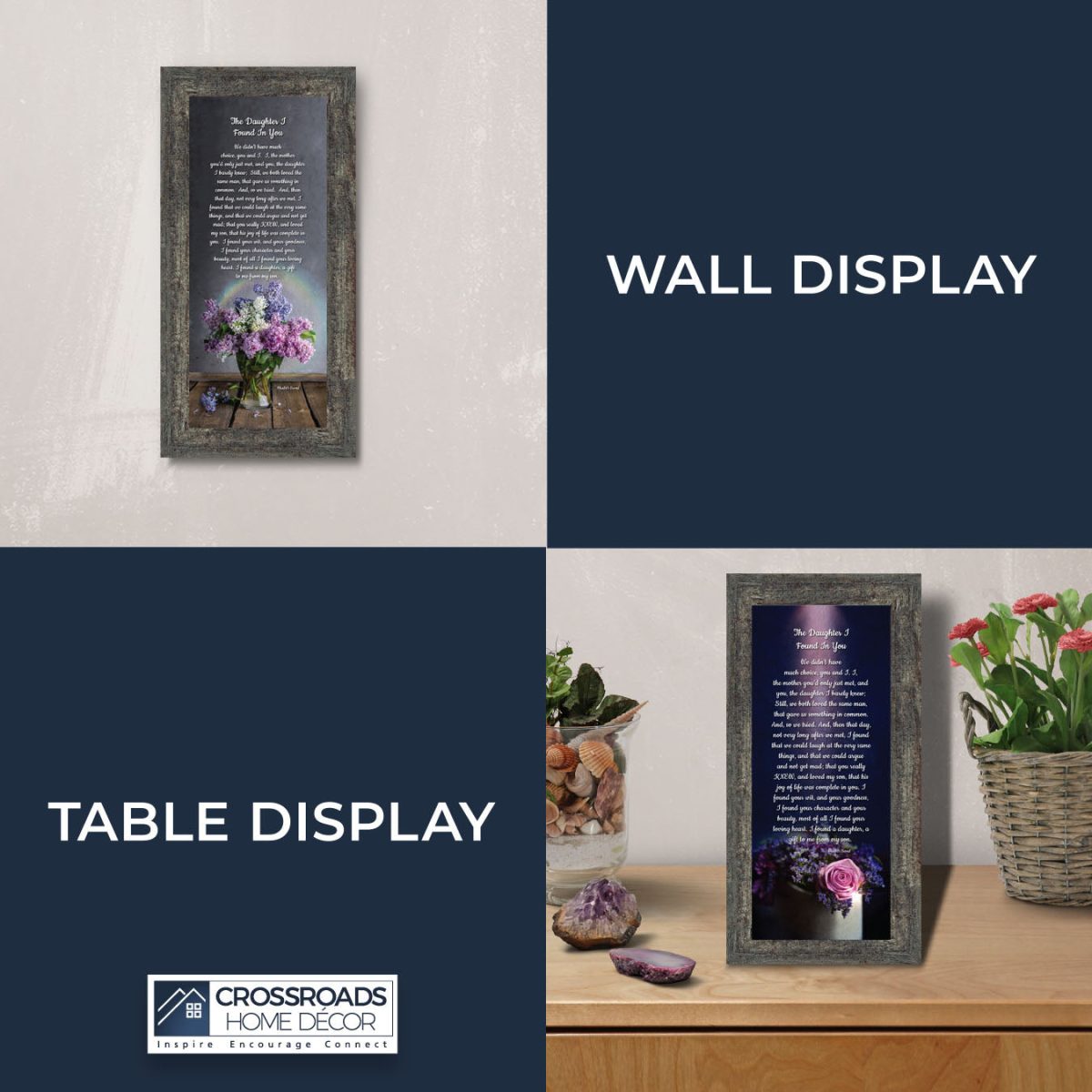 INSPIRE, ENCOURAGE and CONNECT with people to show you care. This inspirational work of art will give all who see it as an encouraging word for the day. Each frame is carefully packed and shipped to you or whomever you choose to ship it to. Every frame has an easel back that makes for a quick easy display (except for the 11×14) or a wall hanger for a more permanent decor solution. The front is real glass and will protect the print inside from fingerprints and dust. This beautiful, encouraging work of art will be cherished by your loved one for a lifetime.