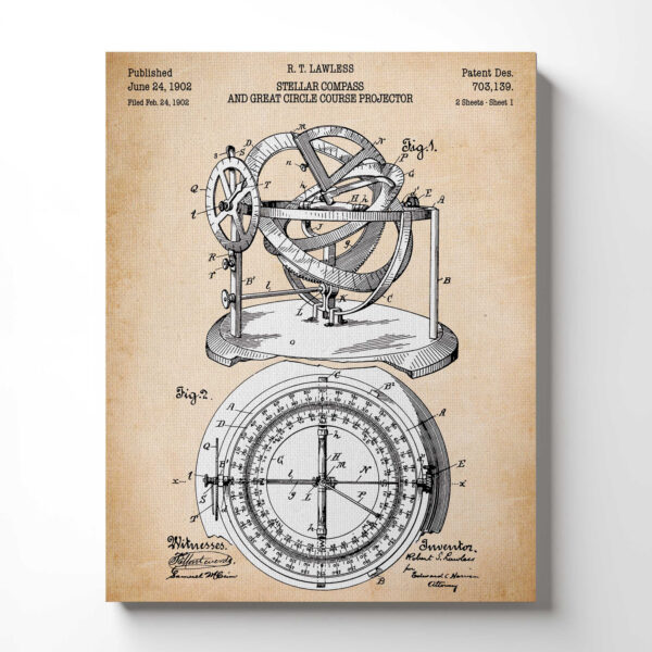 Compass Décor, Nautical Decorations, Stellar Compass Patent Canvas Print, Ready To Hang for Living Room Home Wall Decor, C2600