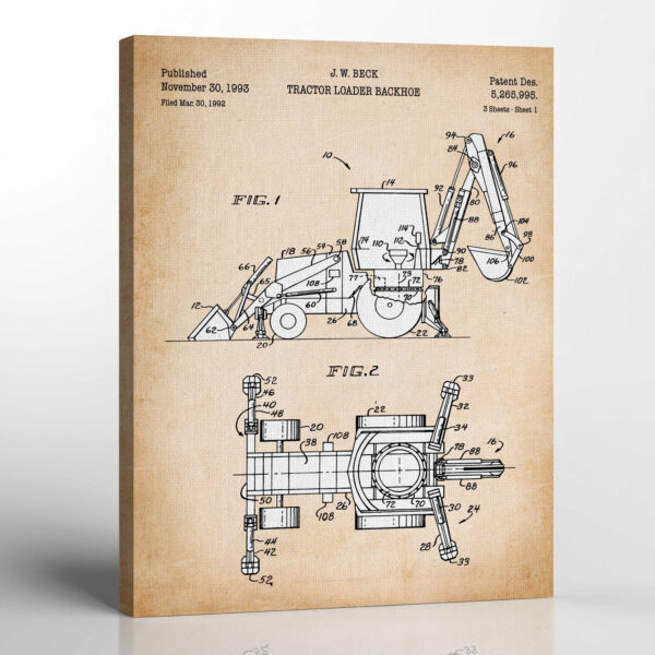Gifts for Construction Workers, Backhoe Patent Canvas Print, Ready To Hang for Living Room Home Wall Decor, C2520