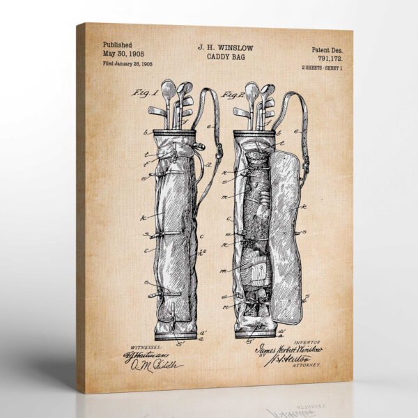 Golf Pictures Wall Decor, Golf Bag Patent Canvas Print, Ready To Hang for Living Room Home Wall Decor, C2325a