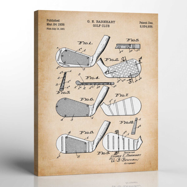 Golf Gift, Golf Clubs Patent Canvas Prints, Ready To Hang for Living Room Home Wall Decor, C2325b