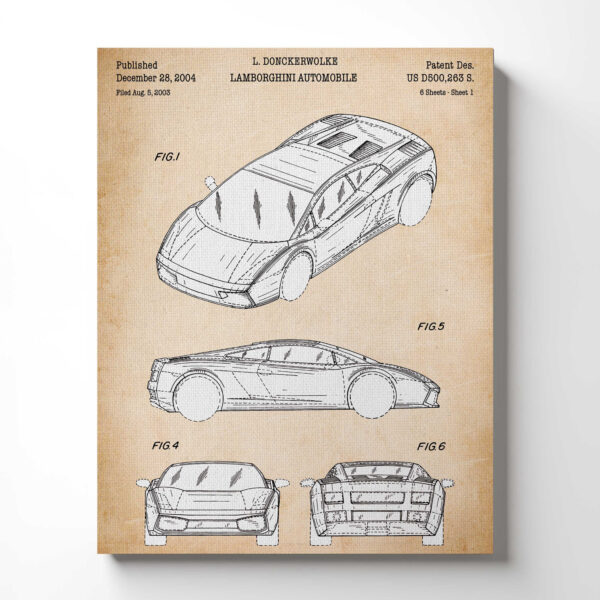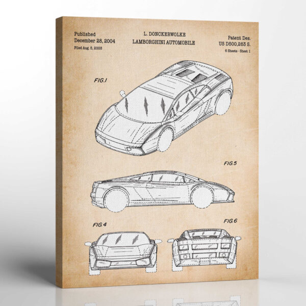 Lomborghini Wall Art, Lamborghini Patent Canvas Print, Ready To Hang for Living Room Home Wall Decor, C2505
