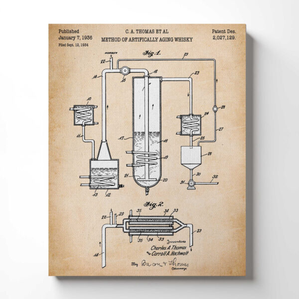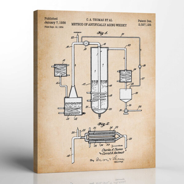 Prohibition Wall Art, Bar Decorations for the Home Bar Set, Aging Whiskey Patent Canvas Print, Ready To Hang for Living Room Home Wall Decor,C2330b