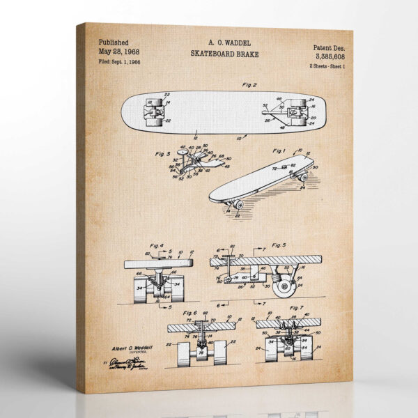 Skateboard Gifts, Skateboard Wall Art Patent Canvas Print, Ready To Hang for Living Room Home Wall Decor, C2629