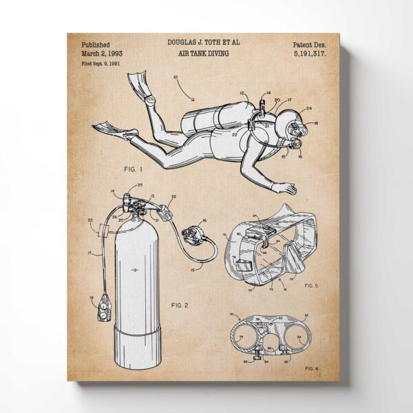 Scuba Diver Gifts, Air Tank Diving Patent Canvas Print, Ready To Hang for Living Room Home Wall Decor, C2664
