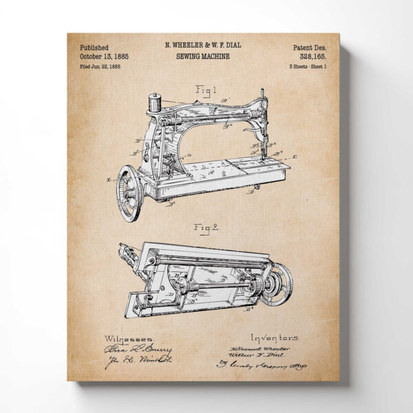 Sewing Signs for Home Décor, Patent Sewing Machine Canvas Print, Ready To Hang for Living Room Home Wall Decor, C2667