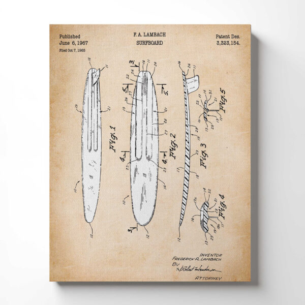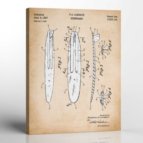 Surfing Gifts for Men, Surfboard Wall Decor, Surf Board Wall Art Patent Canvas Print , Ready To Hang for Living Room Home Wall Decor, C2638