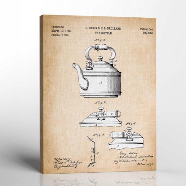 Tea Signs for Tea Bar, Patent Tea Kettle Canvas Print, Ready To Hang for Living Room Home Wall Decor, C2328