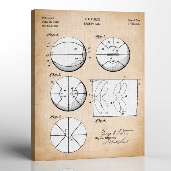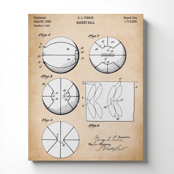 Basketball Posters for Boys Room, Patent Basketball Hoop Canvas Print, Ready To Hang for Living Room Home Wall Decor, C2344c
